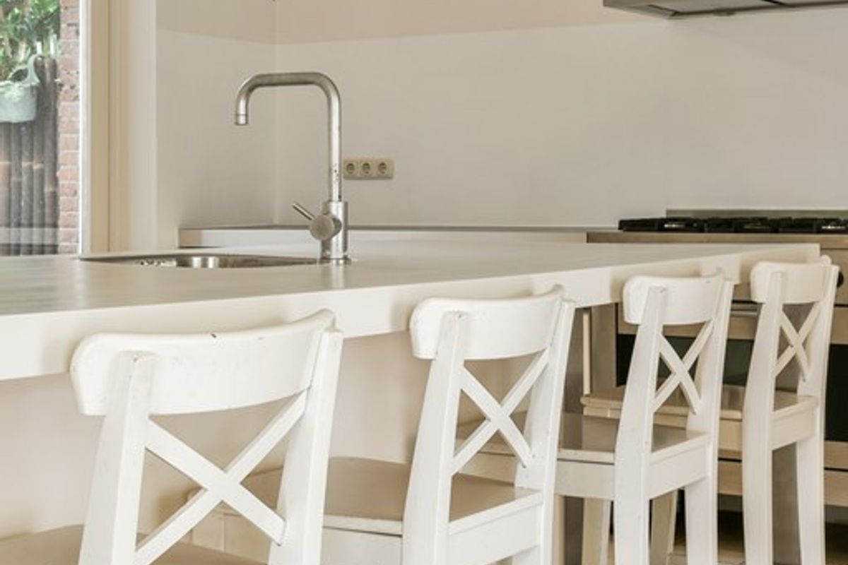 Via de keuken op de begane grond ligt een bescheiden tuin op het zuidoosten, een fijne plek voor het ontbijt in de ochtendzon of een rustige middagpauze buiten.