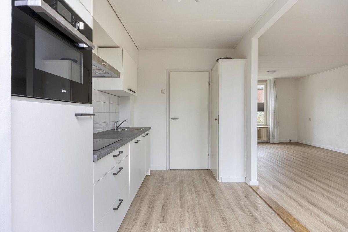 De half-open keuken is praktisch ingedeeld en heeft toegang tot de achtertuin. De lichte en moderne keuken is in 2022 vernieuwd en voorzien van een koelkast, combimagnetron, afzuigkap, inductiekookplaat en vaatwasser.