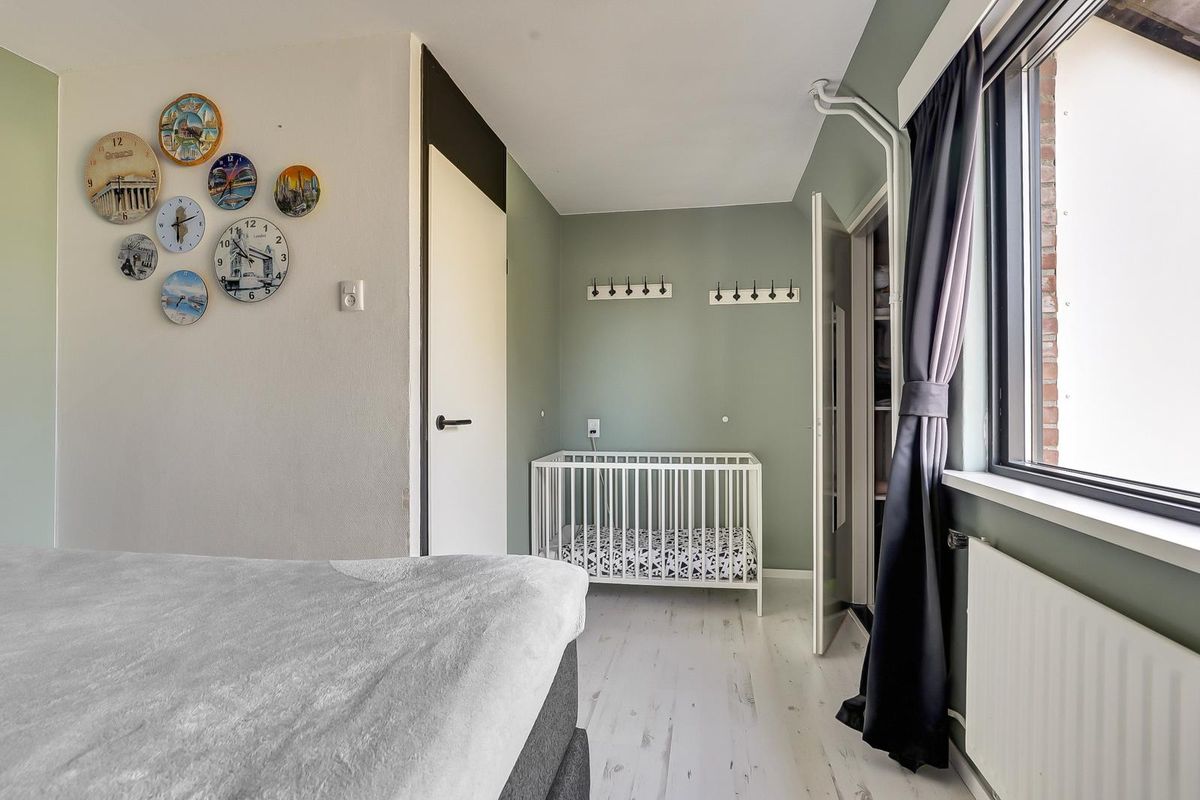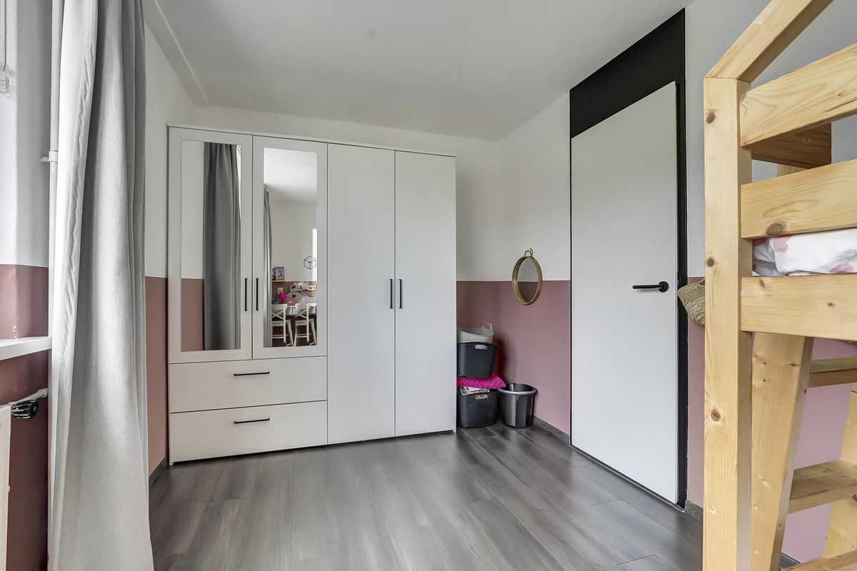 De overloop geeft toegang tot twee slaapkamers met rechte gevels, de kamers zijn netjes afgewerkt en prettig licht. De grootste slaapkamer heeft extra bergruimte in de inloopkast aan de voorzijde.