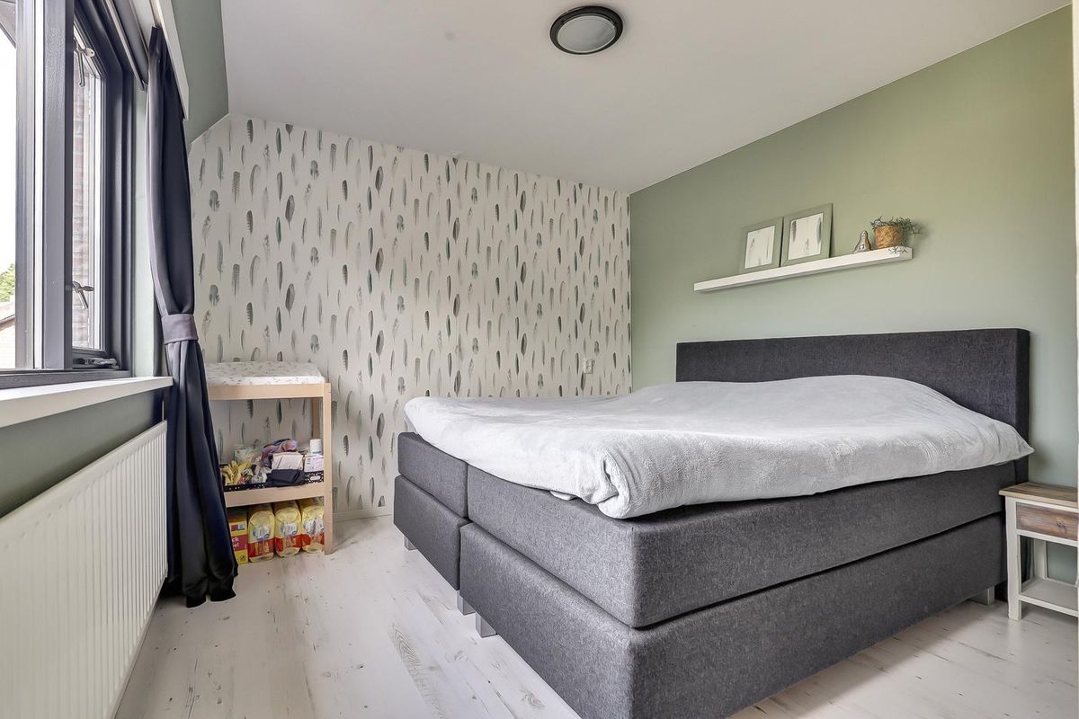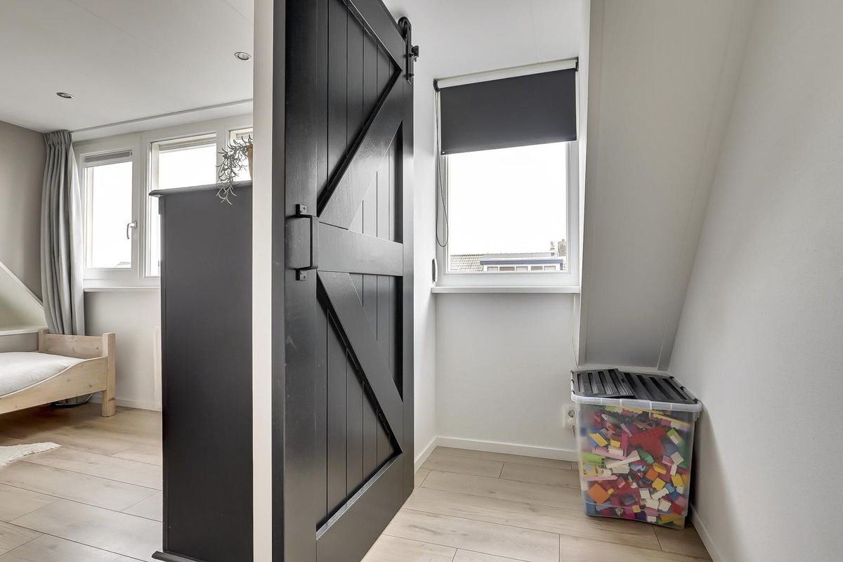 Via een vaste trap bereikt u de tweede verdieping. Hier is een derde slaapkamer gecreëerd, afgewerkt in dezelfde rustige tinten. Door de dakkapel aan achterzijde is de kamer verrassend ruim en licht. Achter de knieschotten en op de overloop is handige bergruimte aanwezig.