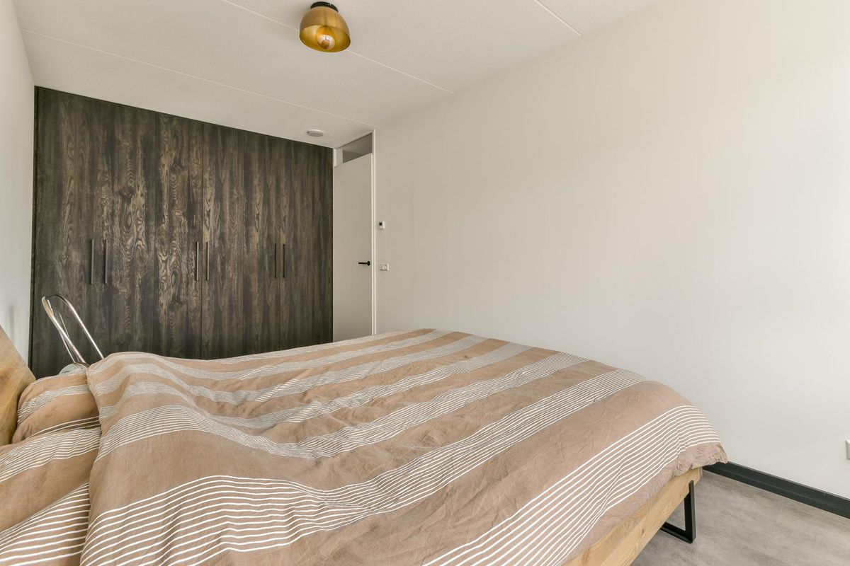 Overloop met toegang tot drie slaapkamers en de badkamer. Twee slaapkamers liggen aan de achterzijde en zijn voorzien van elektrische rolluiken. De grootste slaapkamer is voorzien van een vaste kast. De andere slaapkamer ligt samen met de badkamer aan de voorzijde. De overloop en slaapkamers zijn voorzien van een PVC-vloer in tegellook. De volledig betegelde badkamer is voorzien van een inloopdouche met regendouche, handdouche en nis, een wastafelmeubel met verlichte en verwarmde spiegel en een tweede toilet (wandcloset). Het raam zorgt voor daglicht. Ook deze gehele woonlaag is voorzien van vloerverwarming en -koeling.