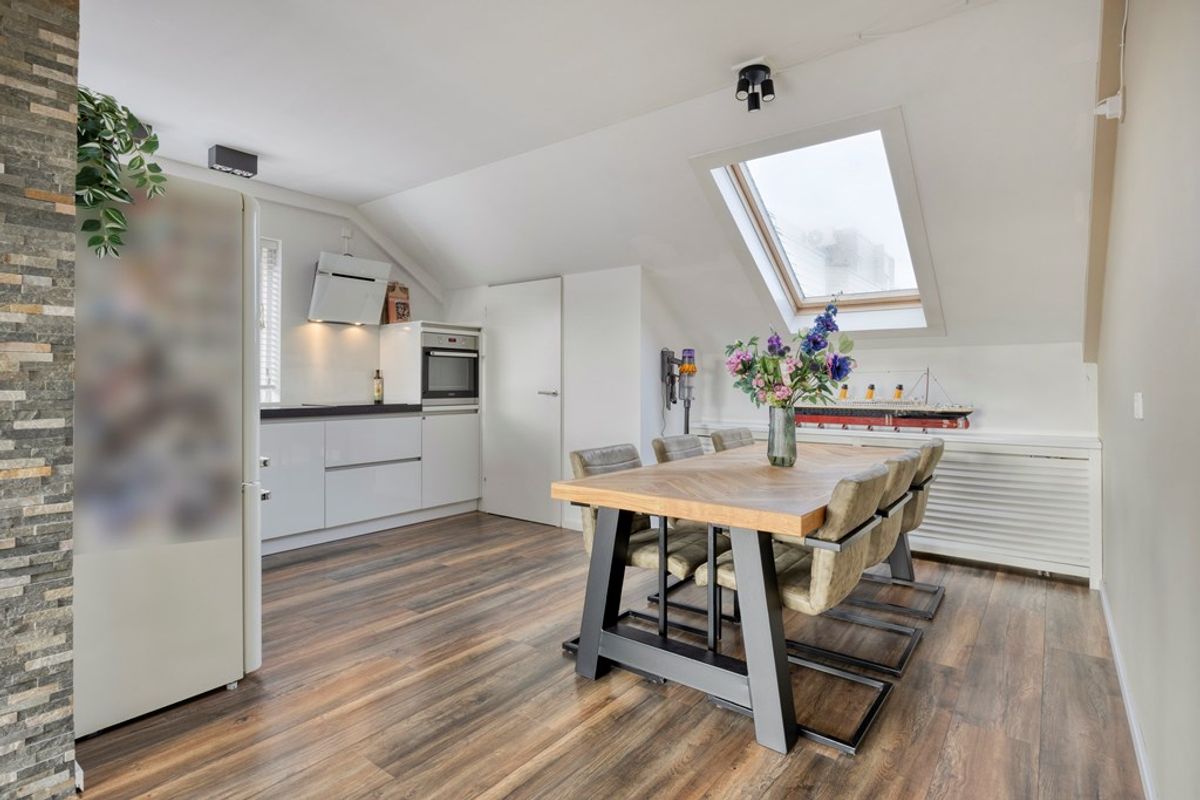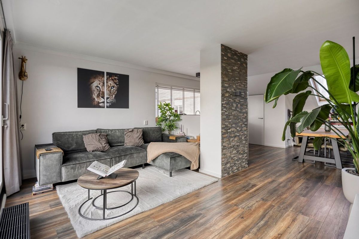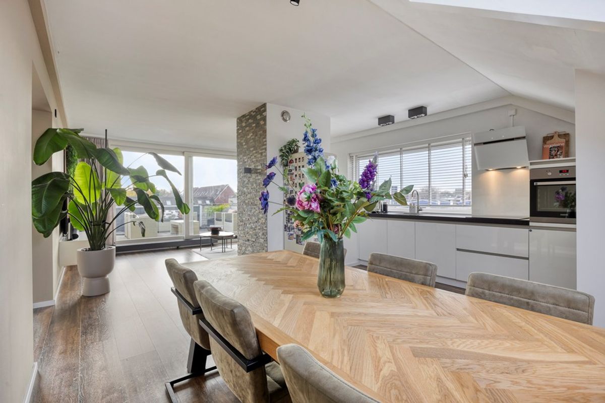 De woonkamer is gelegen aan de achterzijde van het complex en valt direct op door de prettige lichtinval. Dankzij de brede schuifpui wordt het royale dakterras als het ware bij de woonkamer betrokken.