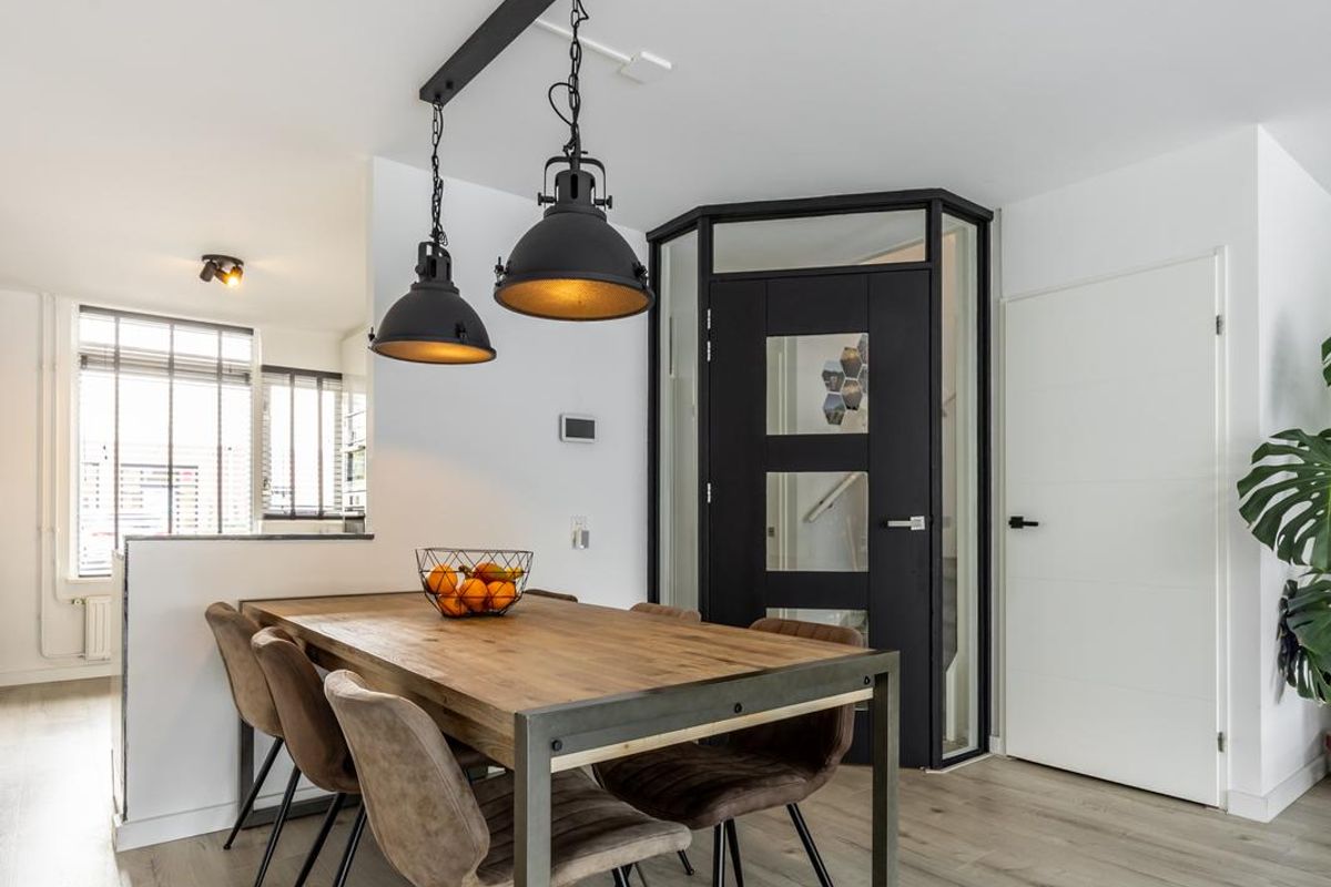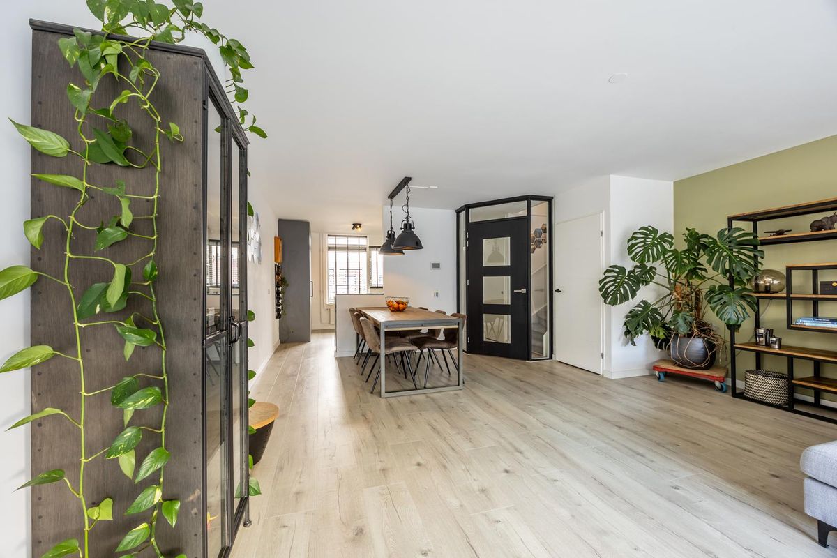 De tuingerichte en uitgebouwde woonkamer is voorzien van een laminaatvloer in lichte kleurstelling en behaaglijke vloerverwarming. De muren zijn strak gestuct in neutrale tinten en de grote raampartijen zorgen voor veel natuurlijk licht. De indeling is praktisch, met voldoende ruimte voor een royale zithoek en een eethoek. De schuifpui aan de achterzijde zorgt voor een mooie verbinding met de tuin – ideaal tijdens zomerse dagen wanneer binnen en buiten in elkaar overlopen.