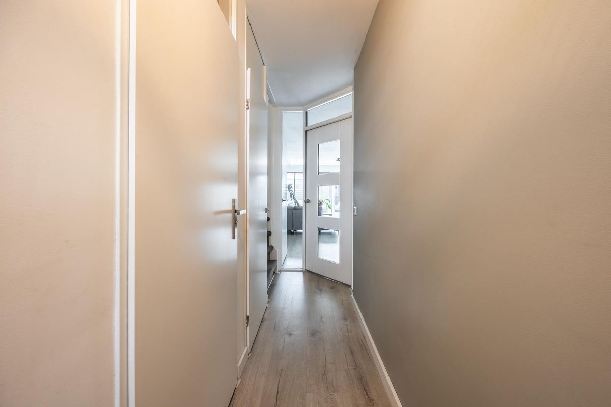 Bij binnenkomst via de voortuin word je in de hal verwelkomd door een prettige sfeer en een verzorgde afwerking. Hier bevinden zich de meterkast, de toiletruimte met fontein, een bergkast, de trapopgang en de toegang tot de woonkamer.