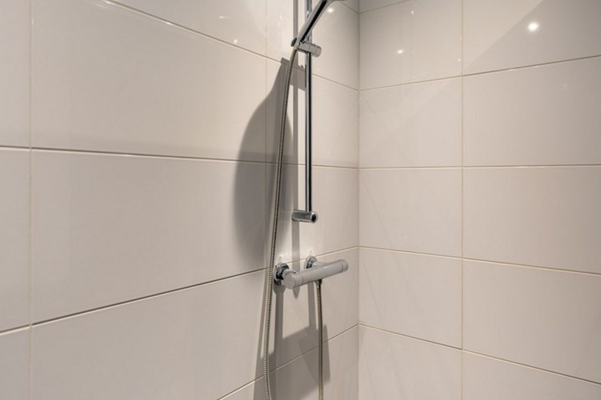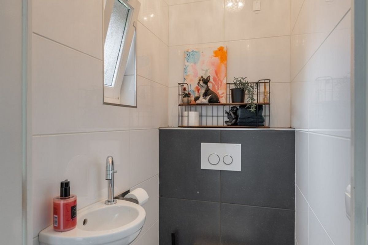 - Badkamer voorzien van inloopdouche, wandcloset en wastafel in meubel;