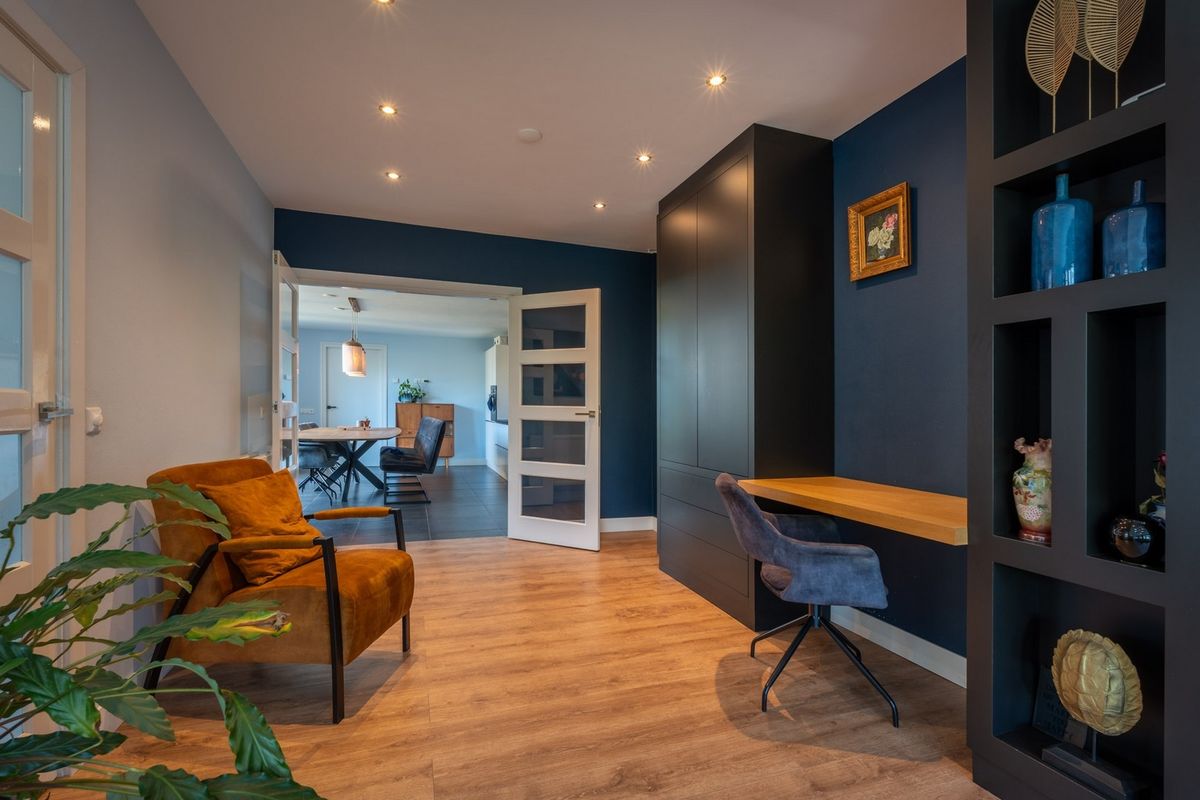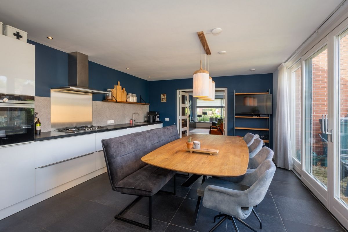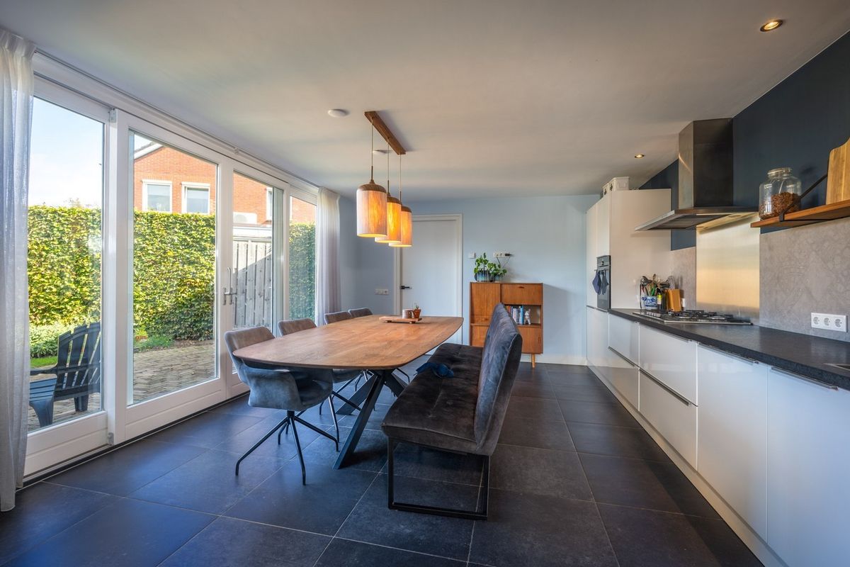 Binnen treft u een sfeervolle, ruime woonkamer aan de voorzijde van de woning en een moderne grote leefkeuken met grote schuifpui naar de tuin.