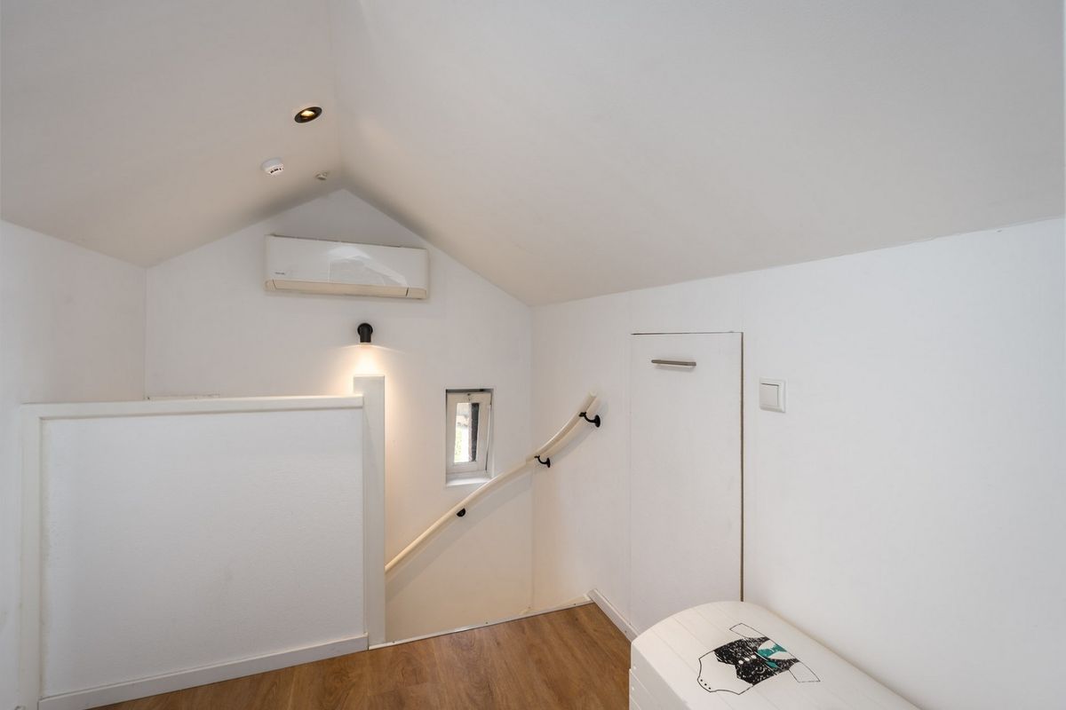 Middels vaste trap bereikbare voorzolder welke toegang geeft tot een vierde slaapkamer, welke o.a. voorzien is van airconditioning boven de zoldertrap.