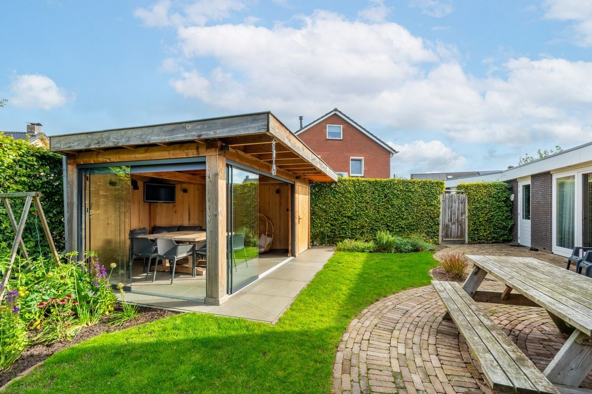 De fraai aangelegde tuin met overkapping maakt het geheel compleet en nodigt uit tot ontspannen momenten in de buitenlucht.