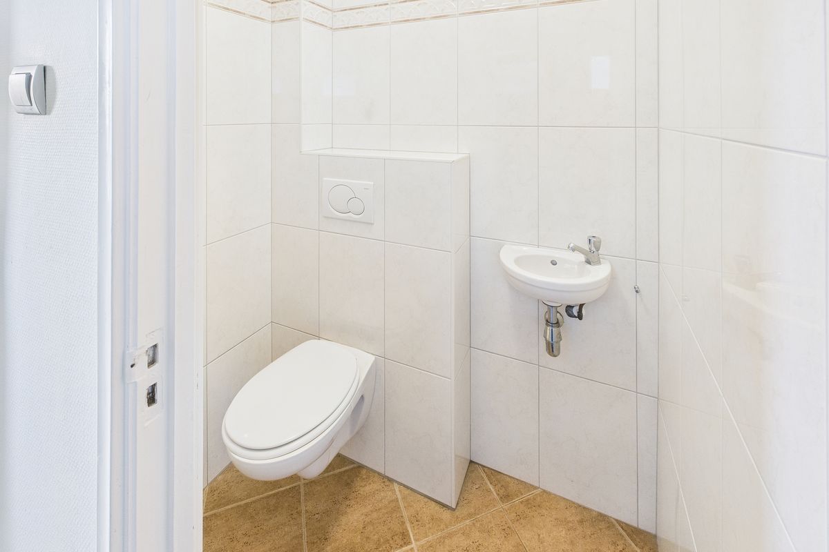 Op de eerste verdieping zijn de overloop, twee slaapkamers, een aparte toiletruimte en badkamer aanwezig. De badkamer is uitgerust met een douche en wastafel.