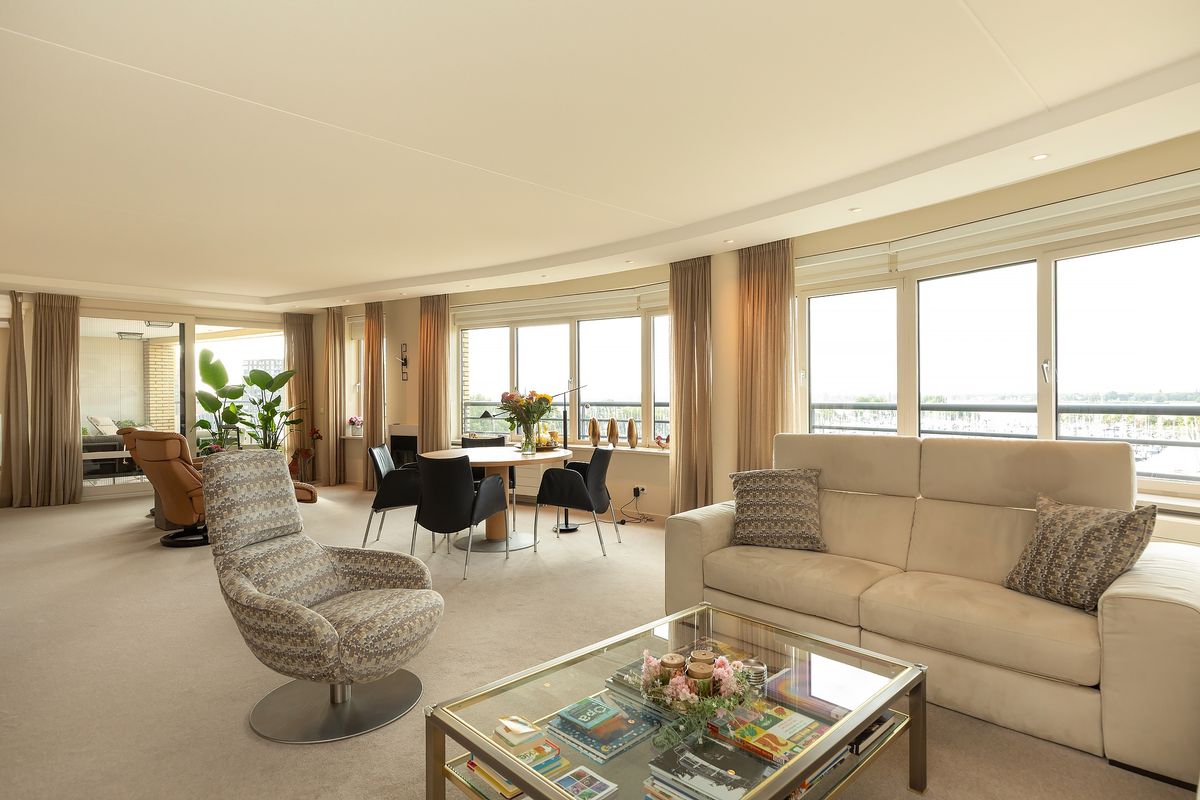 Situated on the edge of Marina Muiderzand, directly by the water, this generous 177 m² apartment features a 21 m² southwest-facing balcony. Here you can enjoy panoramic views of the IJmeer, the marina, and the sunset over Amsterdam — every single day.