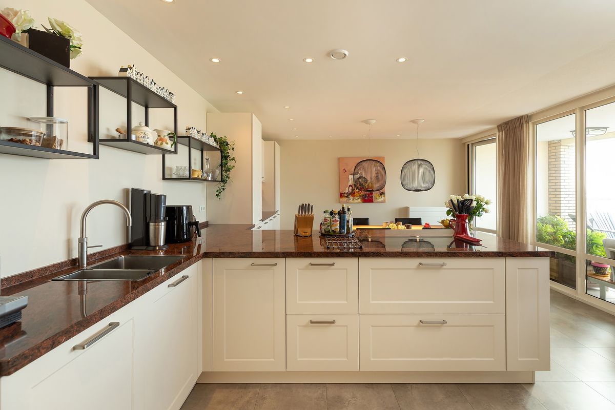 De moderne keuken (2020) is uitgevoerd in een lichte kleurstelling met een hoogwaardig werkblad en voorzien van topapparatuur: