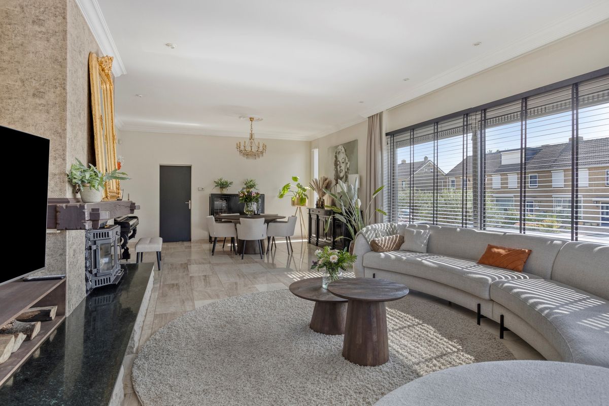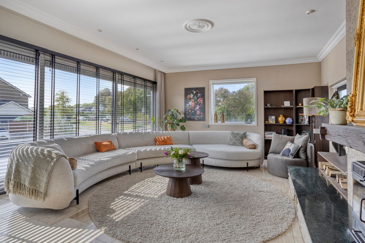 Gezellige woonkamer met veel lichtinval en directe verbinding naar het terras.