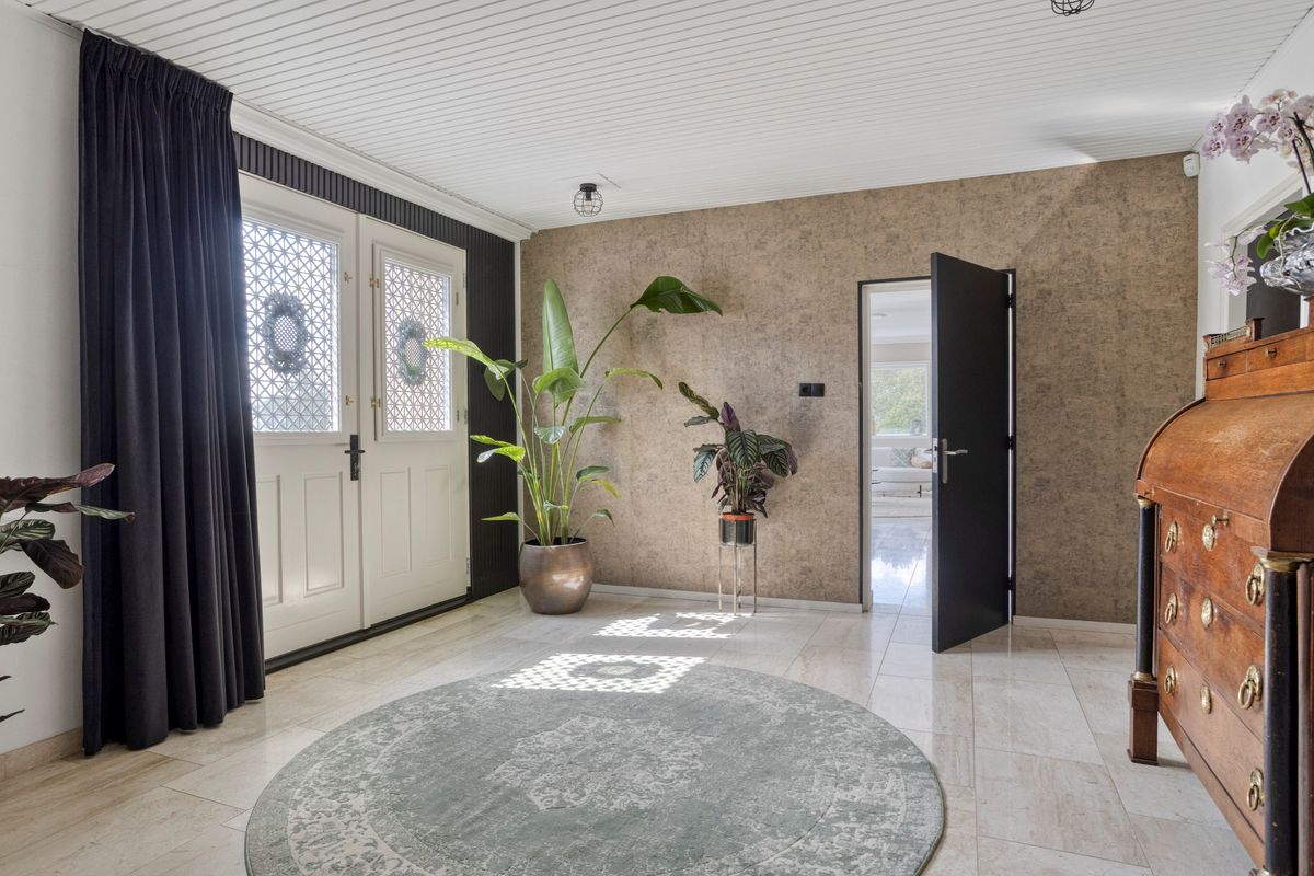 Royale entreehal met toegang tot de woonkamer en keuken.