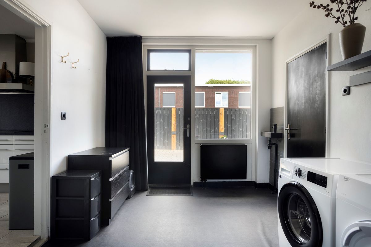 Bijkeuken met extra bergruimte en aansluiting voor witgoed.