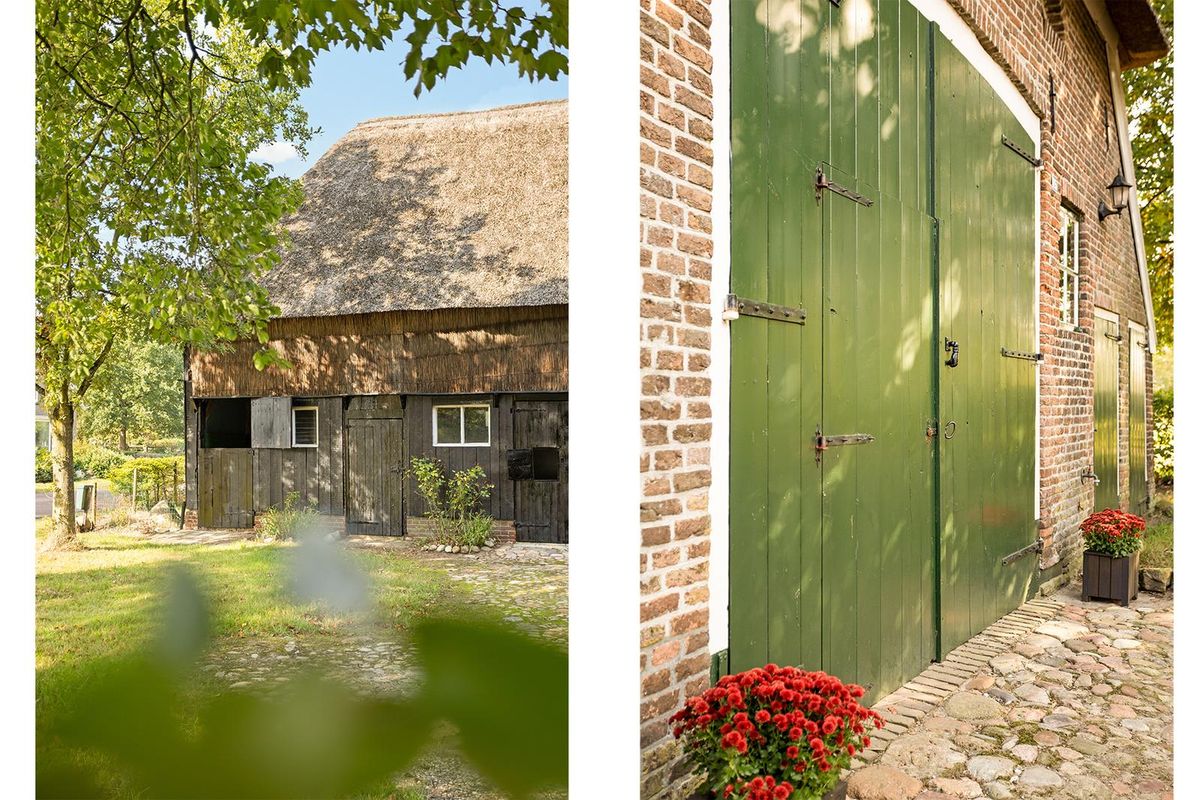 Het landelijk wonen begint al bij de inrit naar de boerderij, voorzien van bomen en veldkeien. Je zet je auto op eigen terrein, in de kapschuur of in de deel van de boerderij.