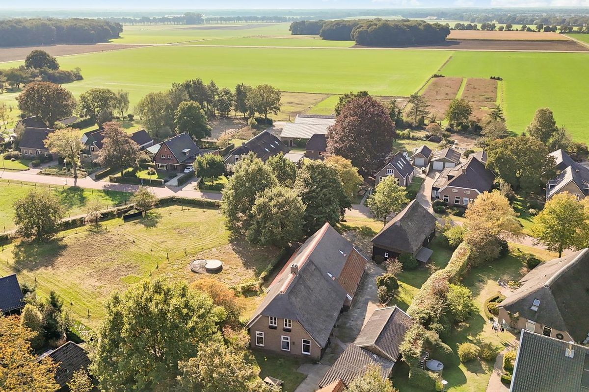In het sfeerrijke, lommerrijke Noord-Sleen vind je deze rietgedekte woonboerderij uit 1916 met zelfs een historie tot 1709 onder de naam Olde Wiggers. De boerderij, met een schapenschuur en drie bijgebouwen is gelegen op een fraai perceel van 3.865 m2 eigen grond.