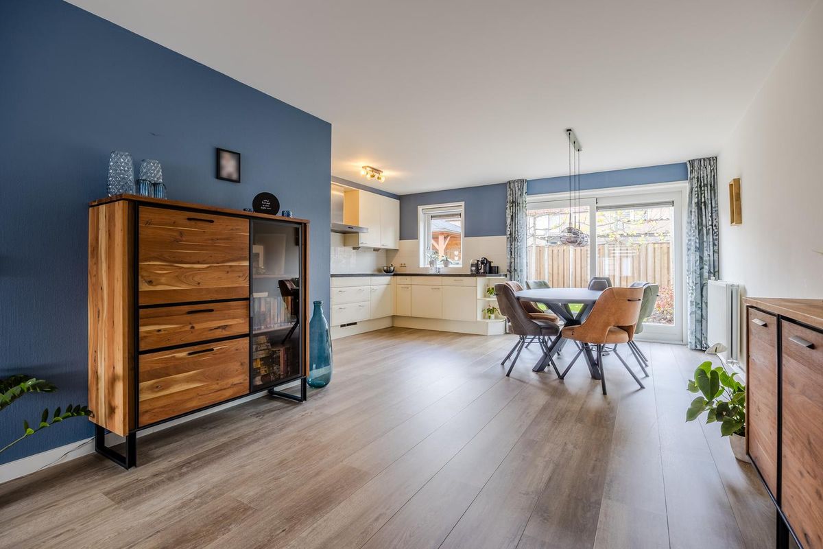 De ruime woonkamer is voorzien van een laminaatvloer en een schuifpui naar de achtertuin. Er is veel daglicht door de grote raampartijen. Via de woonkamer heeft u toegang tot de keuken.