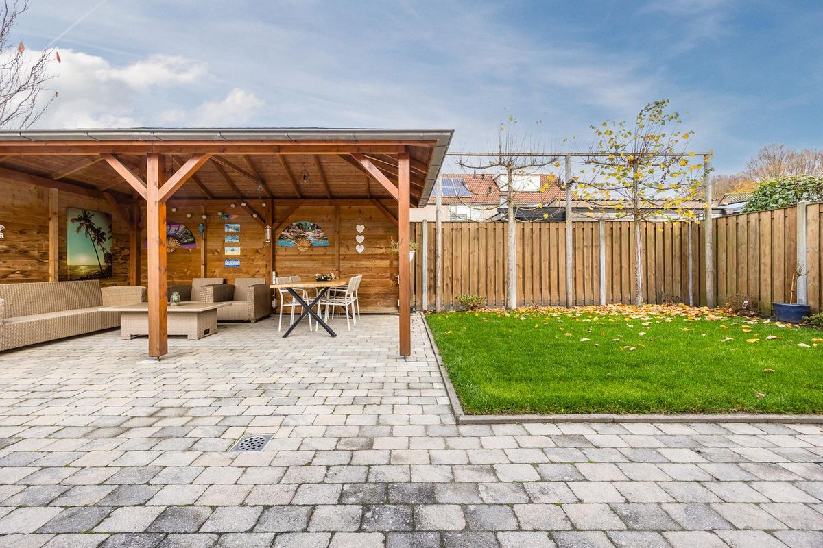In de achtertuin is een grote overkapping waar u heerlijk kunt genieten van de zon op ieder moment van de dag.