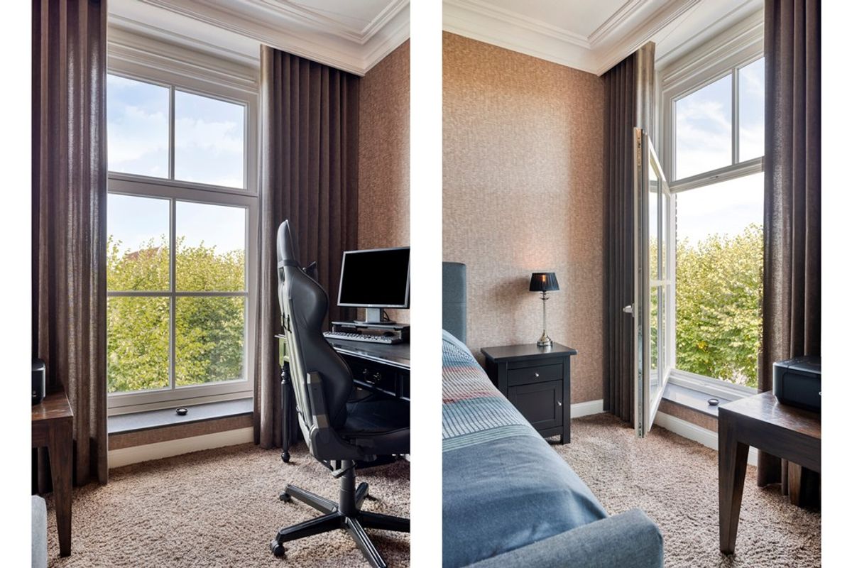 • Slaapkamer: de tweede slaapkamer ligt aan de straatzijde en is zeer royaal van opzet. De lage ramen zorgen voor veel lichtinval en bieden uitzicht op de Markt.