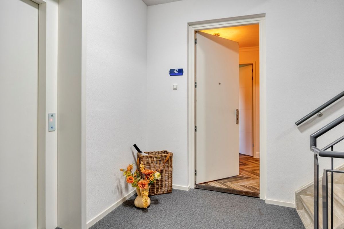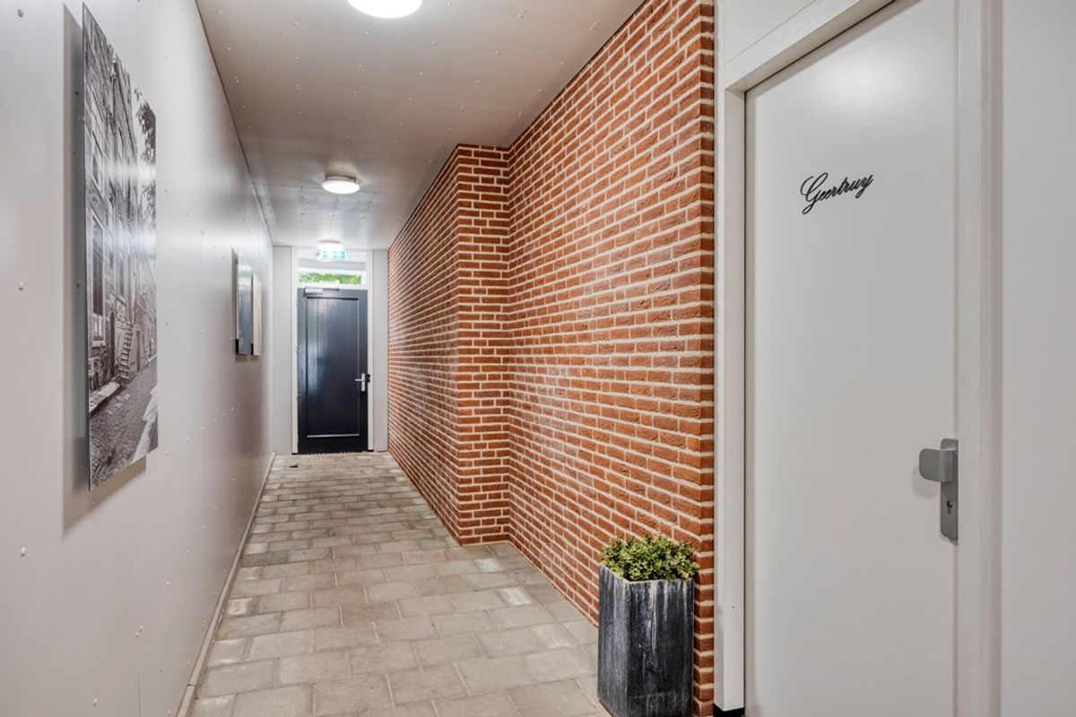 • Entree aan voorzijde van het complex met hier de videofoon en de postboxen. Hierachter een gang naar de hoofdingang met centrale hal, lift en het trappenhuis.