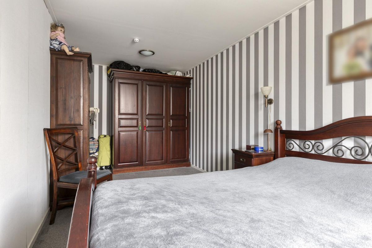Vanuit de keuken heb je toegang tot een ruime bergzolder én de slaapkamer op de begane grond, die in 2018 is aangebouwd. Deze kamer heeft een plat dak en is ideaal als ouderslaapkamer, werkkamer of logeerruimte.