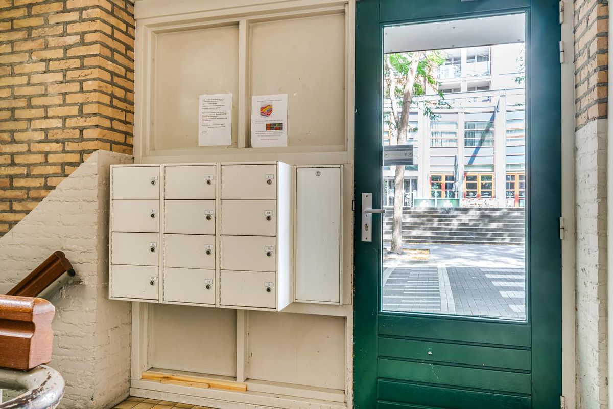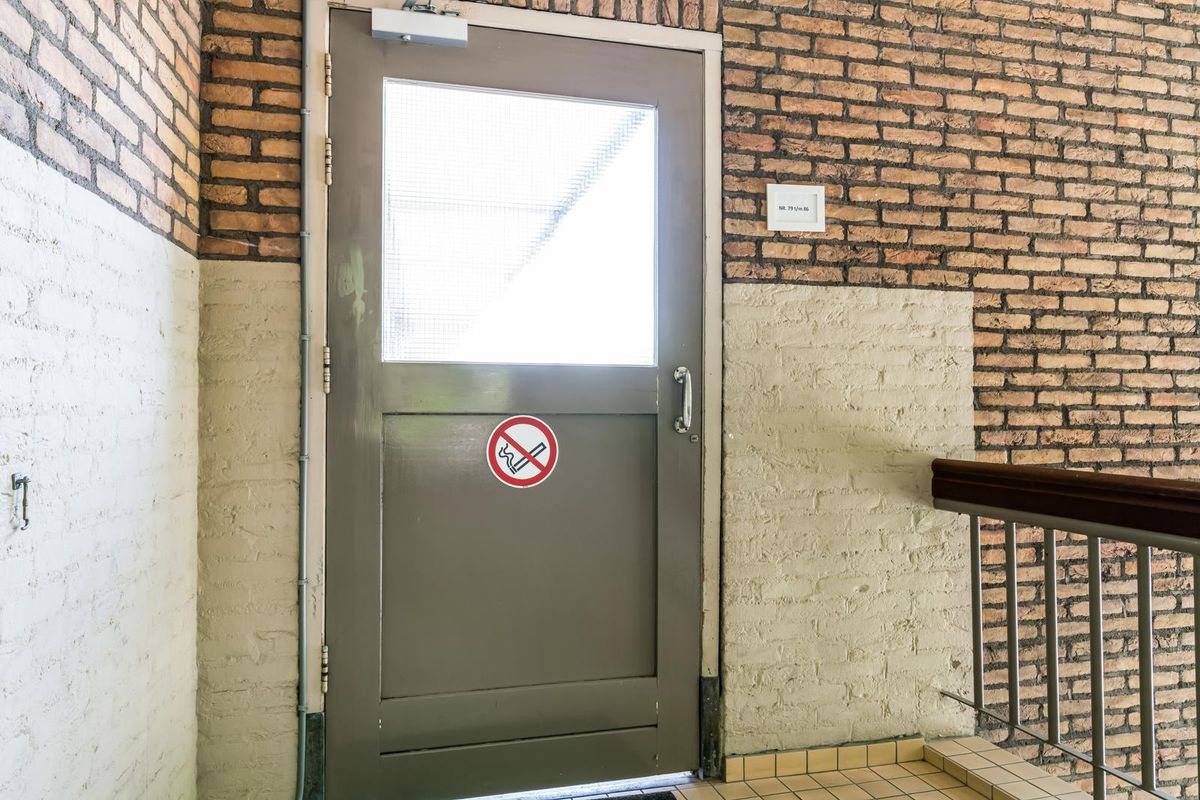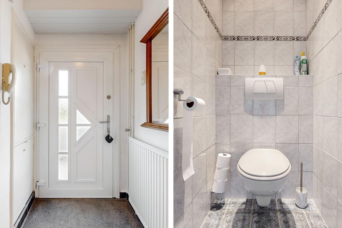 Entree met hal, apart toilet en toegang tot de gesloten keuken en woonkamer. Vanuit de hal zijn ook de badkamer en twee slaapkamers bereikbaar. De woonkamer biedt toegang tot het balkon. Verder is er nog bergruimte dankzij meerdere inbouwkasten en een privékelder.