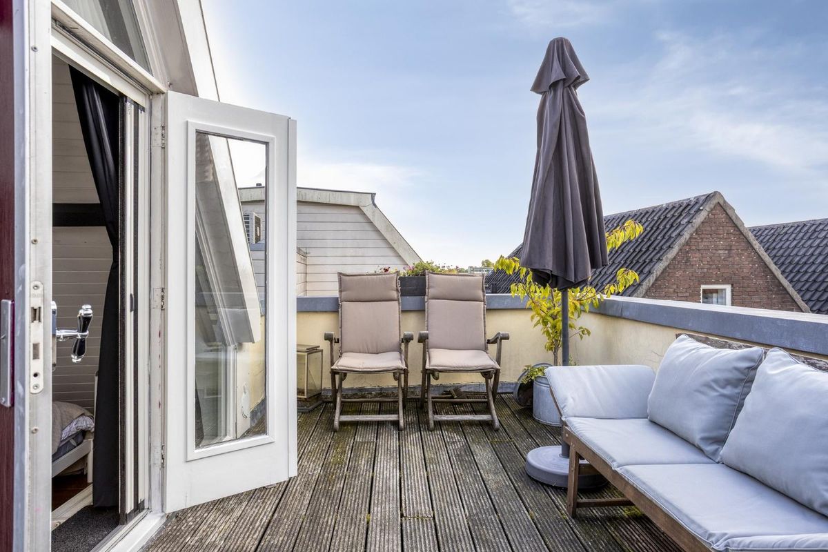 Grenzend aan de slaapkamer op de 3e verdieping ligt het dakterras van 18 m², gelegen op het zuidoosten.