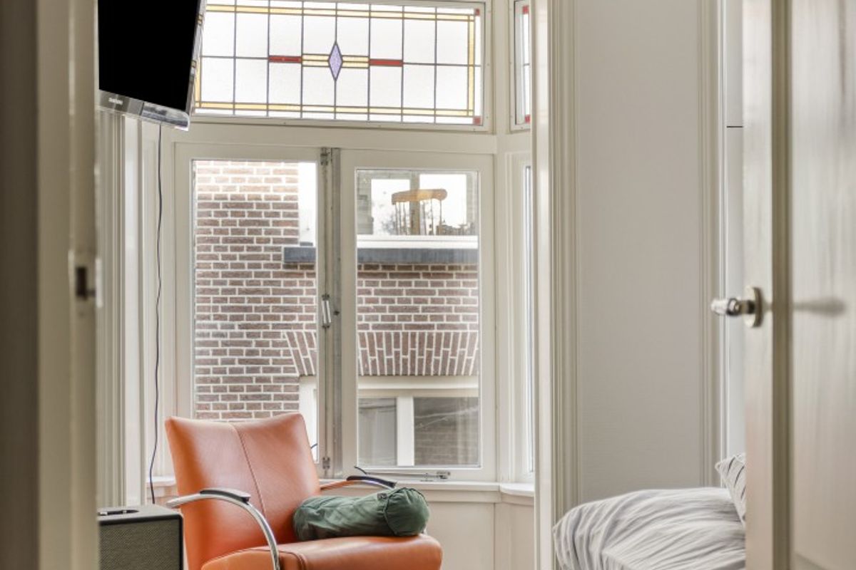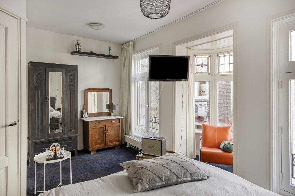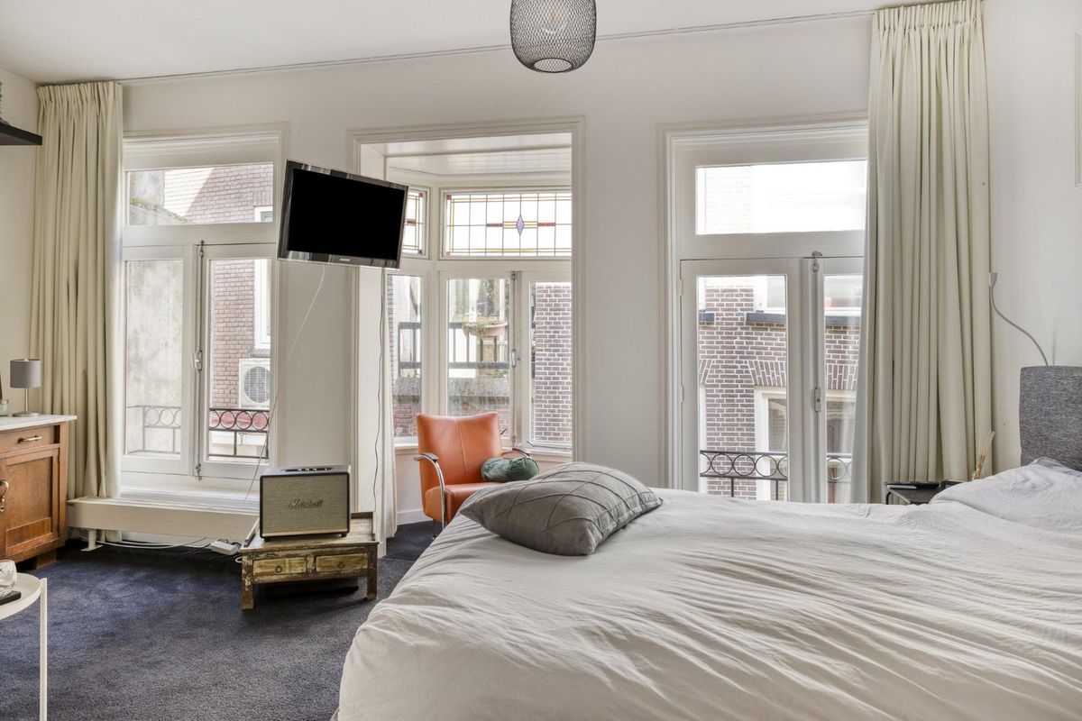 De grote slaapkamer aan de voorzijde is bijzonder sfeervol en ruim opgezet, met een charmant nisje dat een uniek uitzicht biedt: aan de ene kant kijk je uit over de levendige Oudestraat, aan de andere kant zie je de IJssel glinsteren.