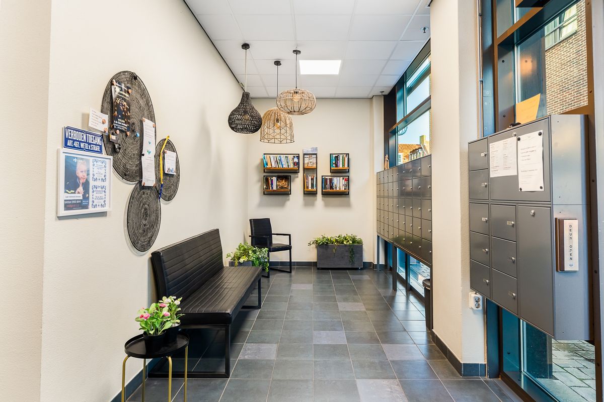 Hoofdtoegang begane grond: opstelling videofoon systeem (wat handig en veilig is zodat u weet wie er bij u aanbelt), opstelling postbussen en toegang tot lift en trappenhuis.