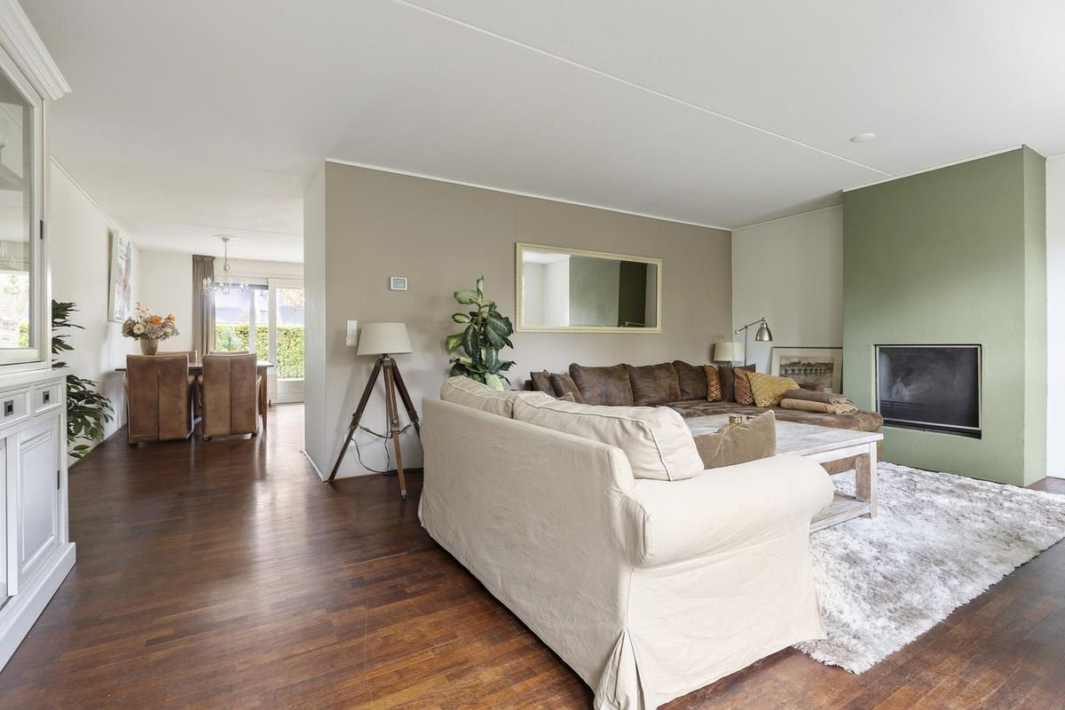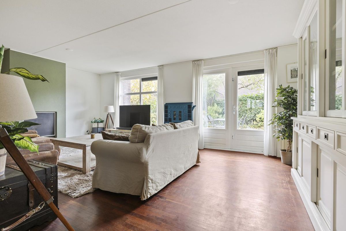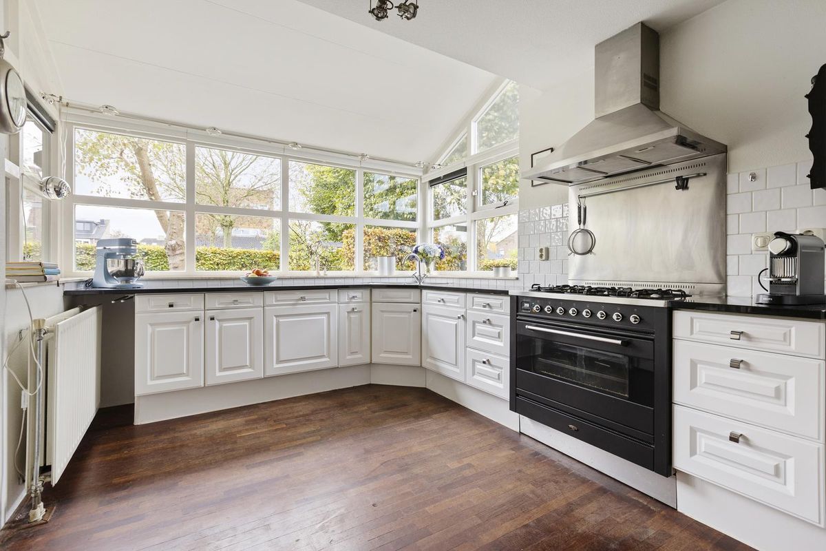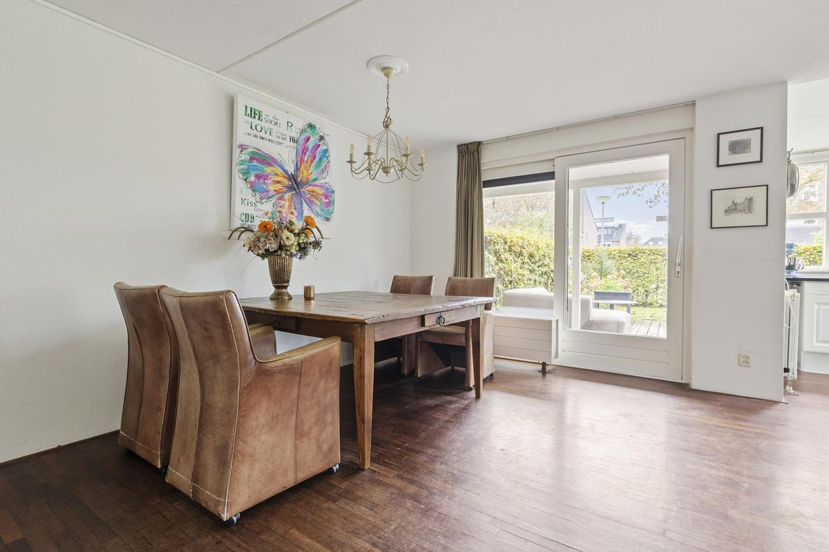Begane grond: entree, hal met meterkast, toilet met fonteintje, toegang tot de ruim opgezette leefruimte met een zithoek met open haard (momenteel niet in gebruik) en openslaande deuren naar de achtertuin. Woonkeuken met ruimte voor een grote eethoek; de keuken is voorzien van diverse inbouwapparatuur (vijfpitsgaskookplaat met oven, afzuigkap, vaatwasser). De koel-/vriescombinatie kan eveneens achterblijven. Vanuit de woonkeuken zijn er openslaande deuren naar de voortuin met een heerlijke veranda.