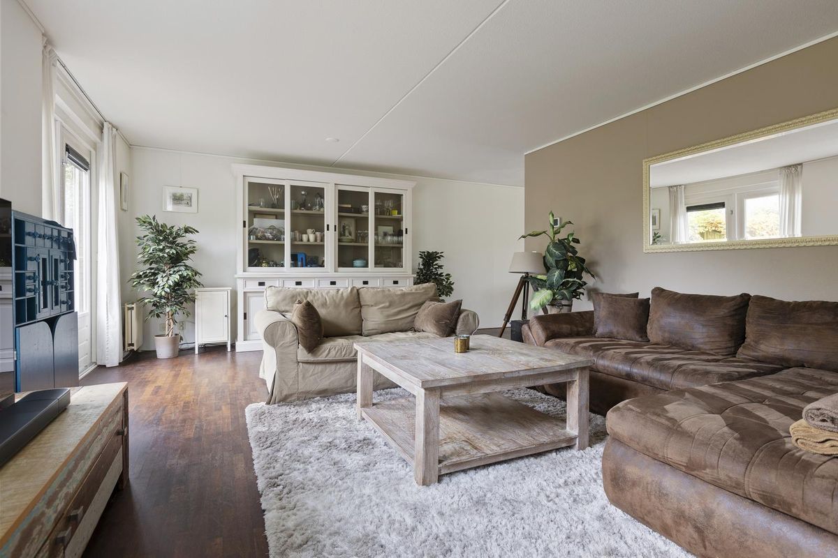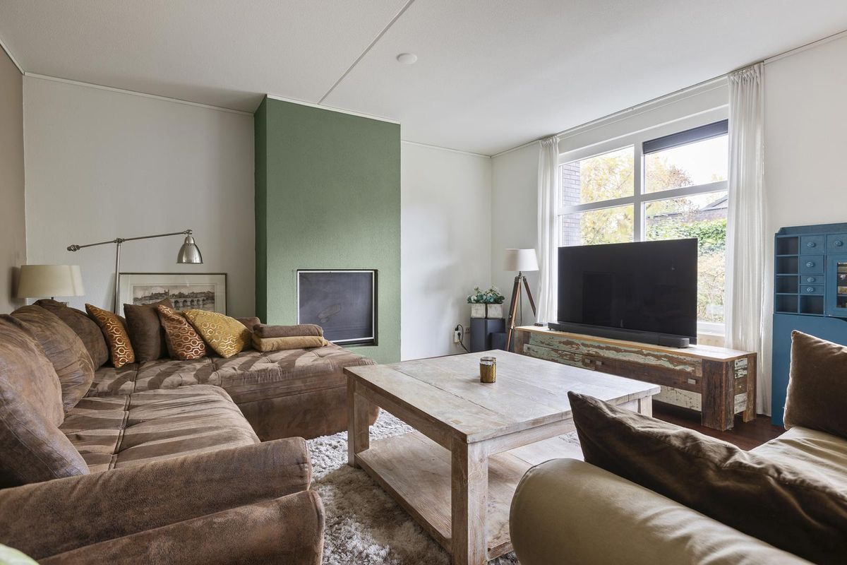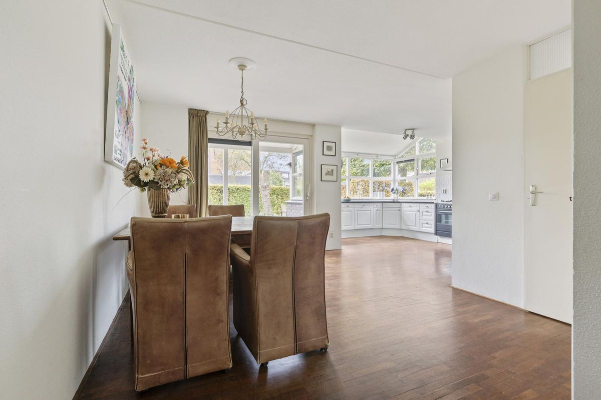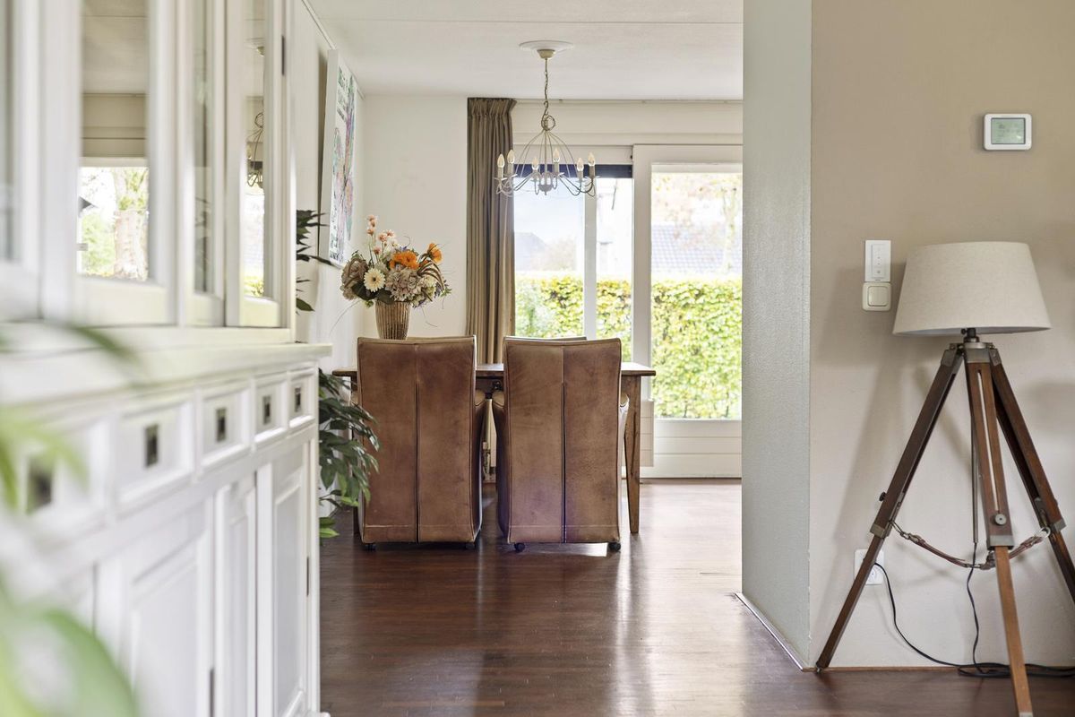 Begane grond: entree, hal met meterkast, toilet met fonteintje, toegang tot de ruim opgezette leefruimte met een zithoek met open haard (momenteel niet in gebruik) en openslaande deuren naar de achtertuin. Woonkeuken met ruimte voor een grote eethoek; de keuken is voorzien van diverse inbouwapparatuur (vijfpitsgaskookplaat met oven, afzuigkap, vaatwasser). De koel-/vriescombinatie kan eveneens achterblijven. Vanuit de woonkeuken zijn er openslaande deuren naar de voortuin met een heerlijke veranda.