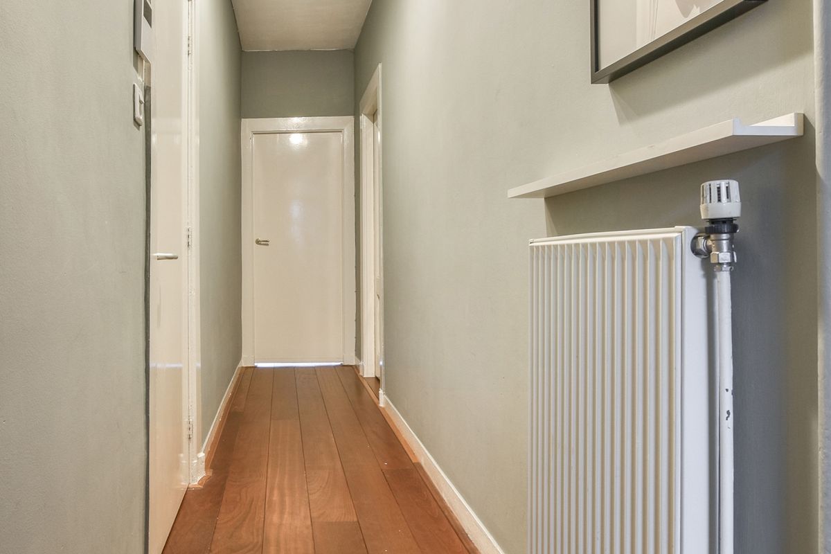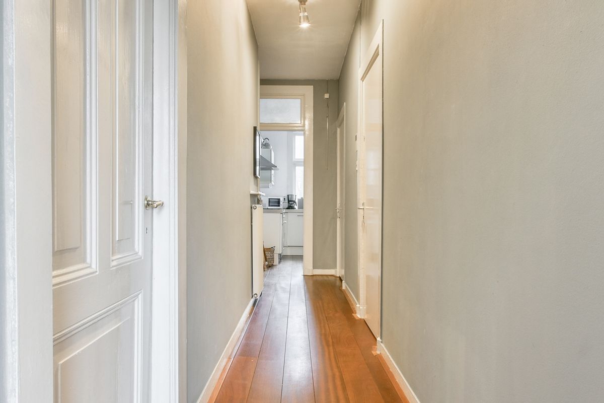 Entree via het gemeenschappelijke trappenhuis op de eerste etage. De hal verschaft toegang tot alle ruimtes. Aan de voorzijde ligt de woonkamer. De woning is volledig ingericht. Er ligt een prachtige houten vloer en de woning heeft mooie hoge plafonds. Ensuite toegang tot de slaapkamer aan de achterzijde met een tweepersoonsboxspring. Aan de voorzijde ligt de tweede kleine slaapkamer, ideaal als gastenkamer of study. De aparte keuken is voorzien van een gasfornuis van Smeg met een grote oven, een afwasmachine en een wasmachine en en grote ijskast. De badkamer is klein, maar functioneel, met een inloopdouche, wastafel en toilet.