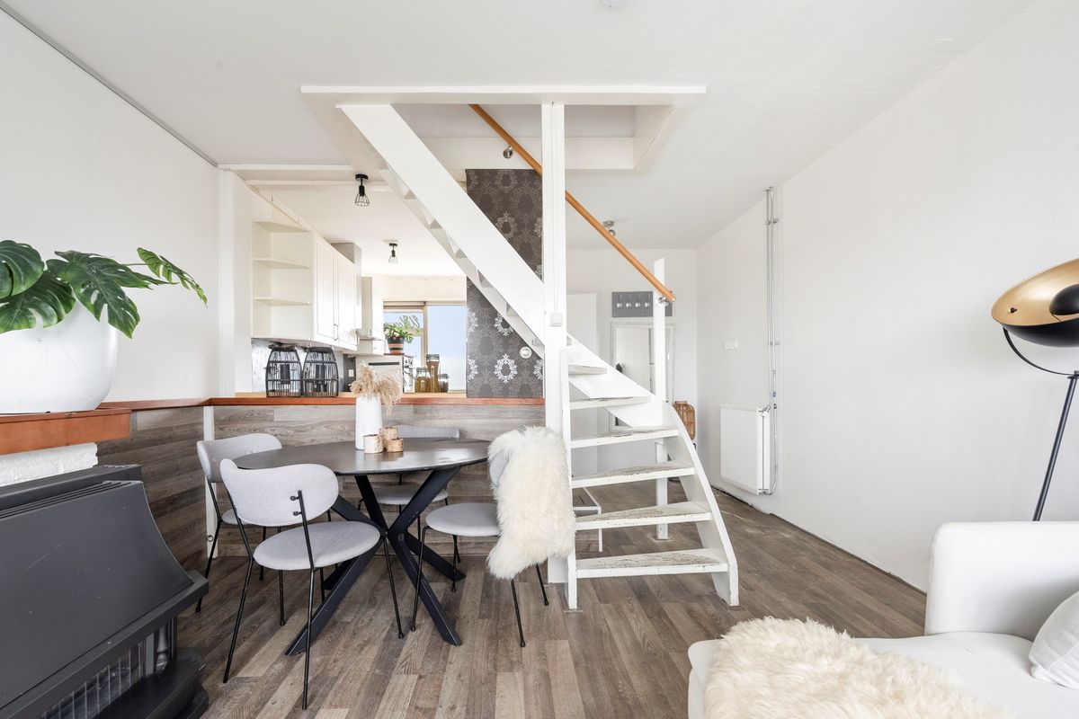 • Woonkamer met veel daglicht en een mooi uitzicht over de omgeving, plus een vaste trap naar de verdieping.