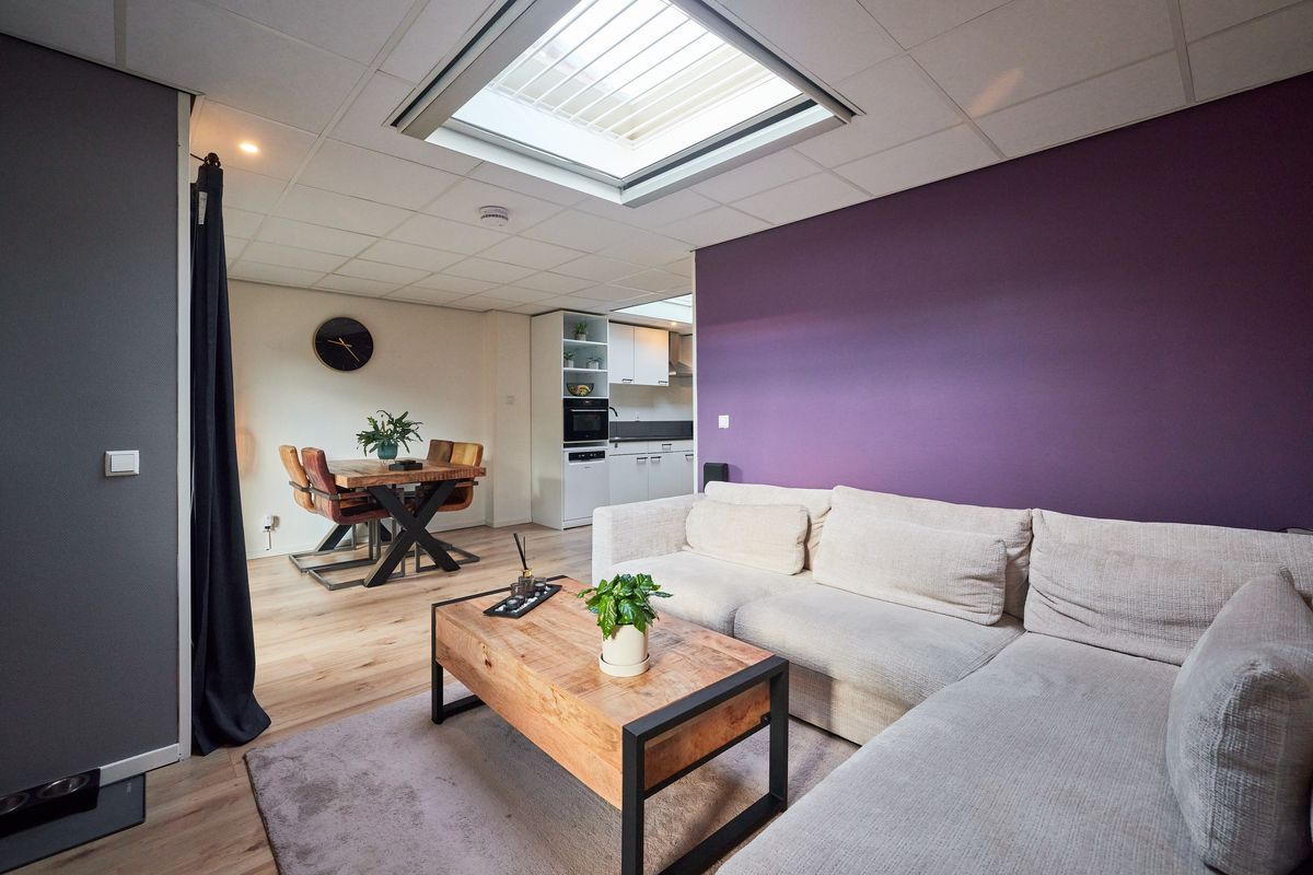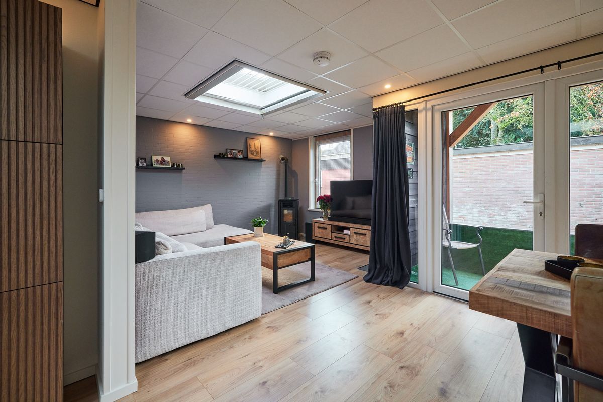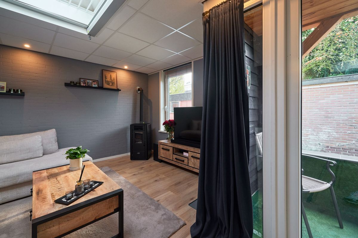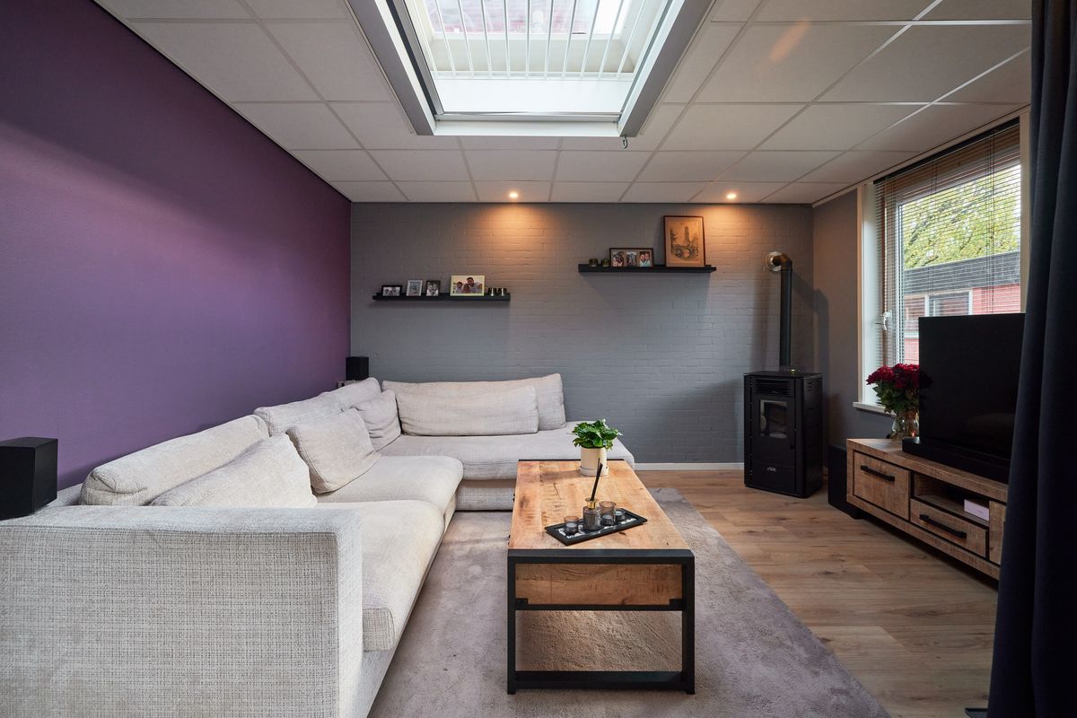 - Riante woonkamer met lichtkoepel en gezellige palletkachel