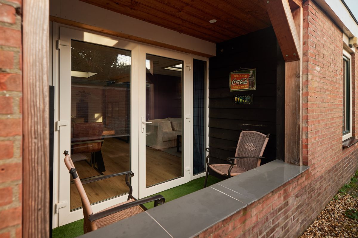 De woonkamer is ruim opgezet en voorzien van een apart eetgedeelte, een sfeervolle palletkachel en een grote lichtkoepel die zorgt voor een mooie lichtinval. Via de openslaande deuren heb je toegang tot de loggia – een rustige plek waar binnen en buiten naadloos in elkaar overgaan.