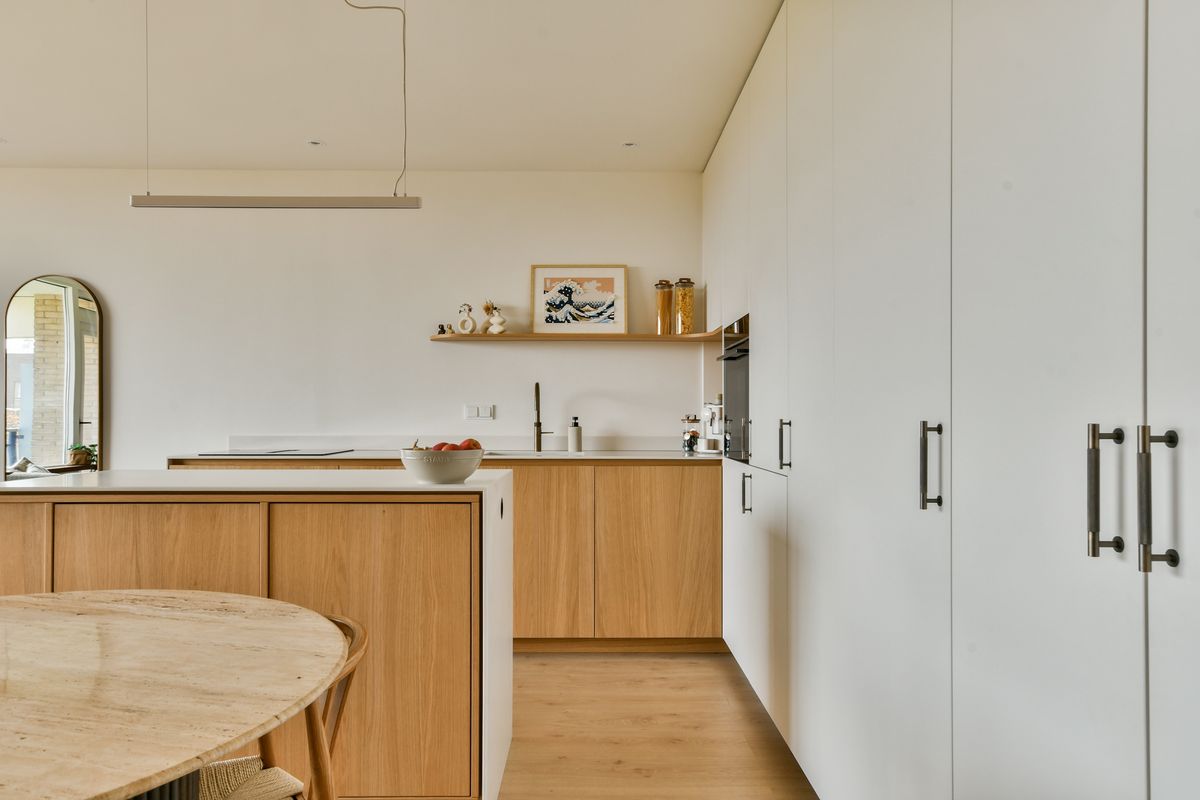 Het volledige appartement is voorzien van een prachtige houtenvloer.