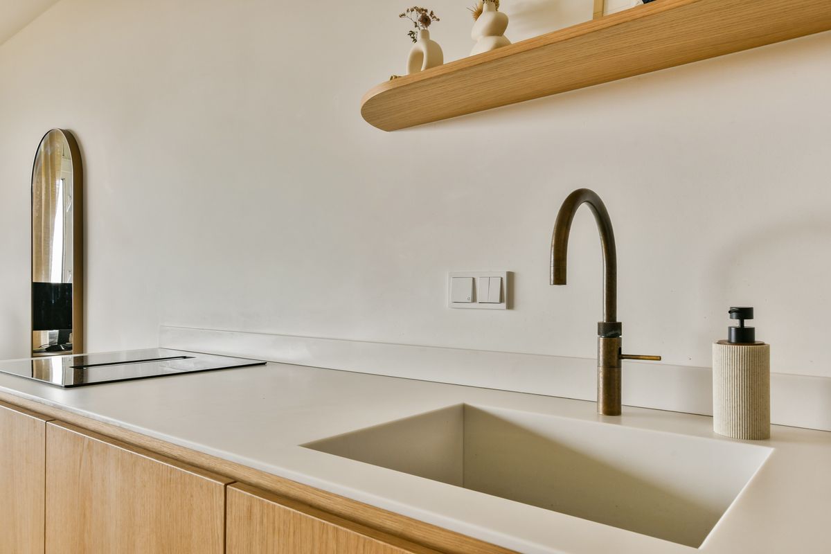 Vanuit de slaapkamer betreed je de badkamer met inloopdouche en een mooi strak vormgegeven wastafelmeubel.