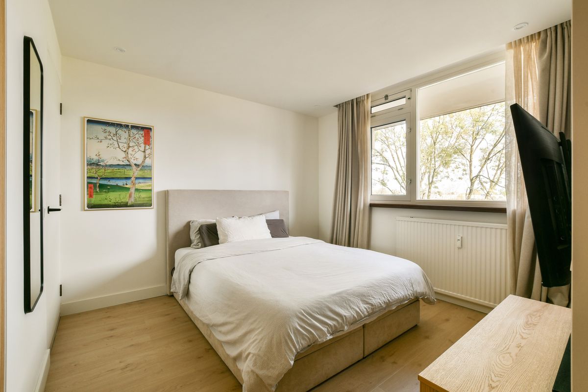 De slaapkamer aan de voorzijde van het appartement gelegen, voorzien van prachtige inbouwkasten.
