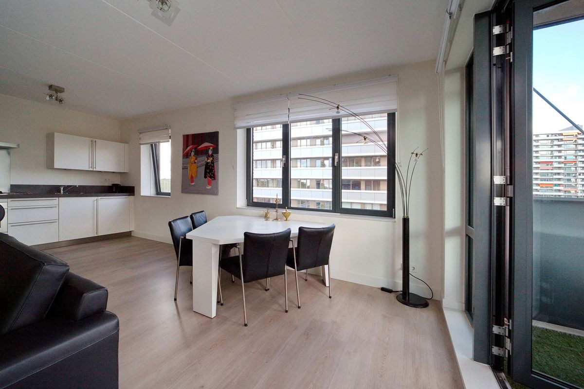 Bij binnenkomst van het appartement valt direct de goede afwerking, het vele licht (hoekligging!) en vooral het uitzicht op. Wat een heerlijke ruimte!