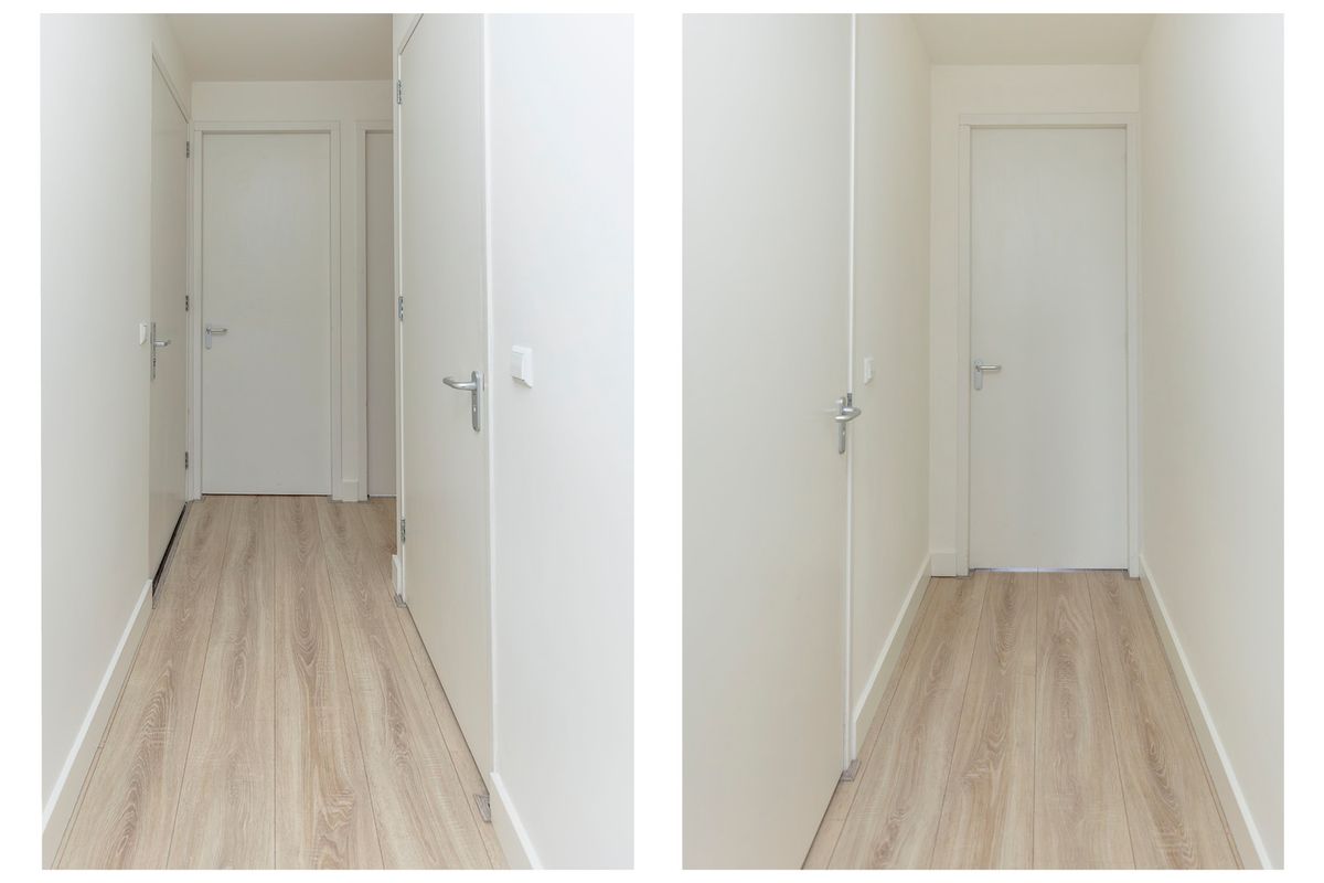 De ruime woonkamer met open keuken beschikt over veel lichtinval. De mooie eikenhout-look laminaatvloer, gestucte wanden en plafonds maken de kamer tot een mooi geheel. Een fijne ruimte met een goede vibe.