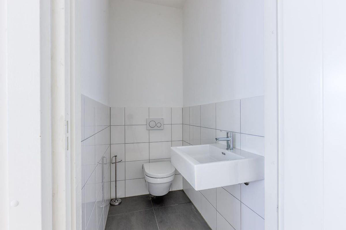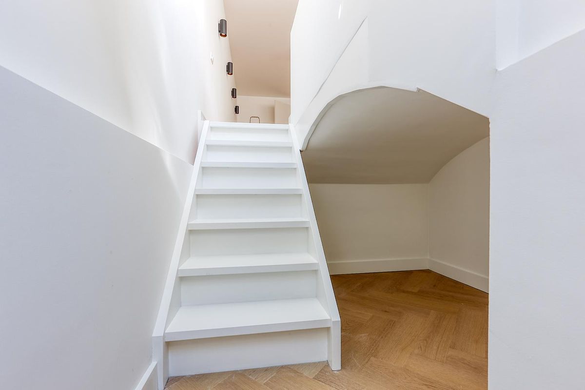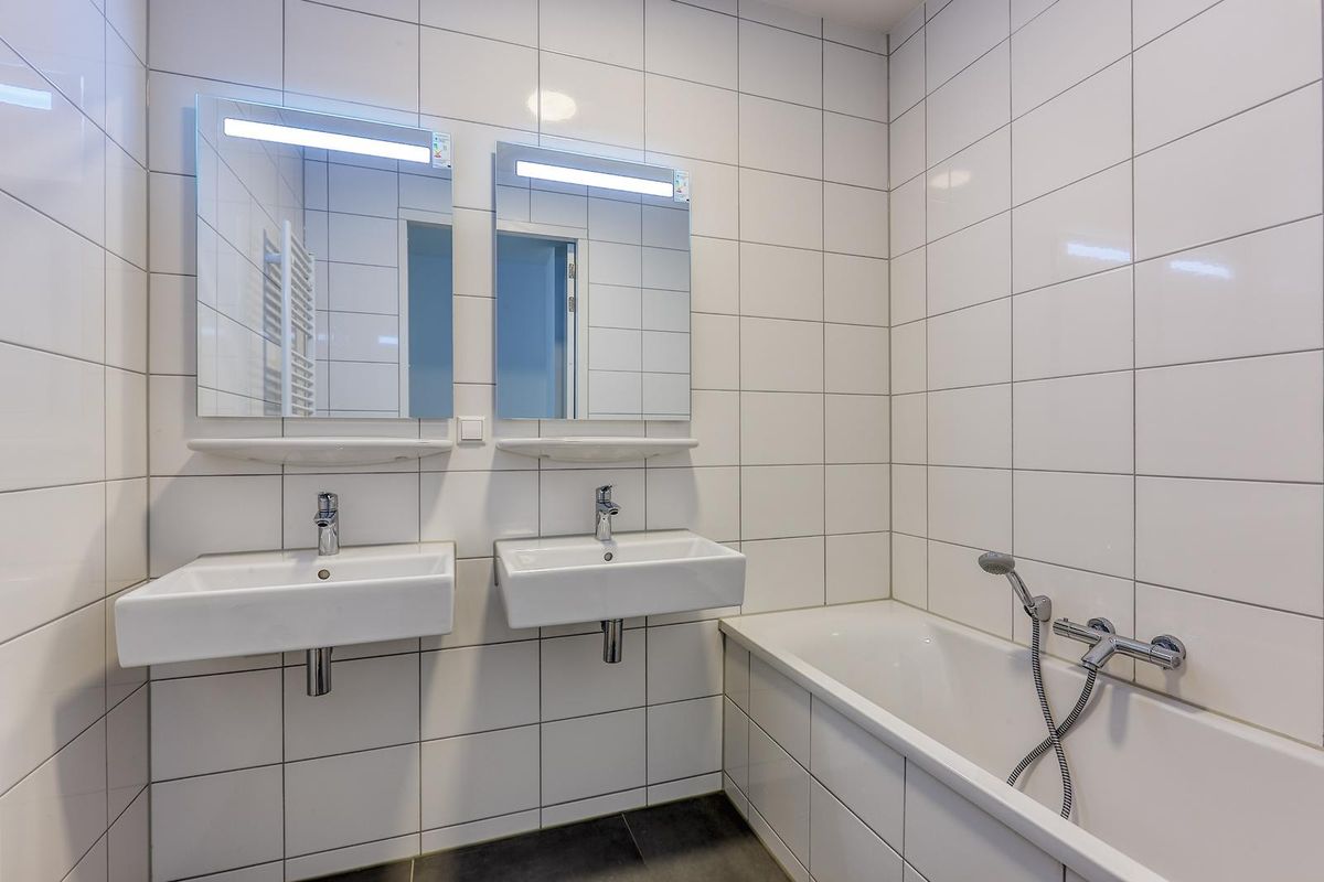 Het appartement beschikt over twee slaapkamers. De hoofdslaapkamer, gelegen in het souterrain, is een oase van rust met een vrijstaand designbad, aparte douche en toilet. De tweede slaapkamer bevindt zich op de begane grond aan de voorzijde van de woning. Op deze verdieping vindt u tevens de tweede badkamer, voorzien van een ligbad en dubbele wastafel, evenals een apart zwevend toilet met fontein.