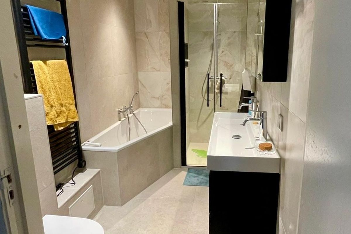 The apartment is located on the third floor. Upon entering the hall, you have access to the separate toilet, the bathroom, and all other rooms. The bright living room is at the rear and opens onto the balcony. The semi-open kitchen is fully equipped with built-in appliances, including a fridge, hob, extractor, and dishwasher.