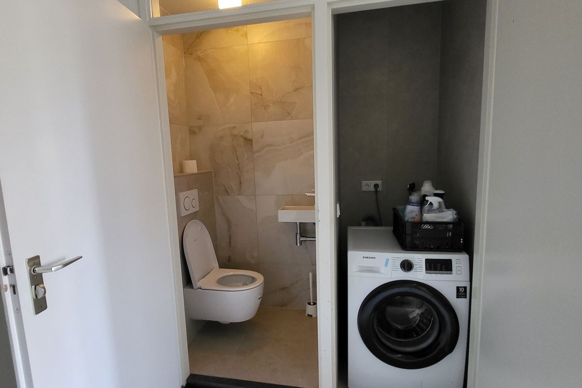 Het appartement bevindt zich op de derde verdieping. Bij binnenkomt in de hal heb je toegang tot het separate toilet, de badkamer en alle overige ruimtes.