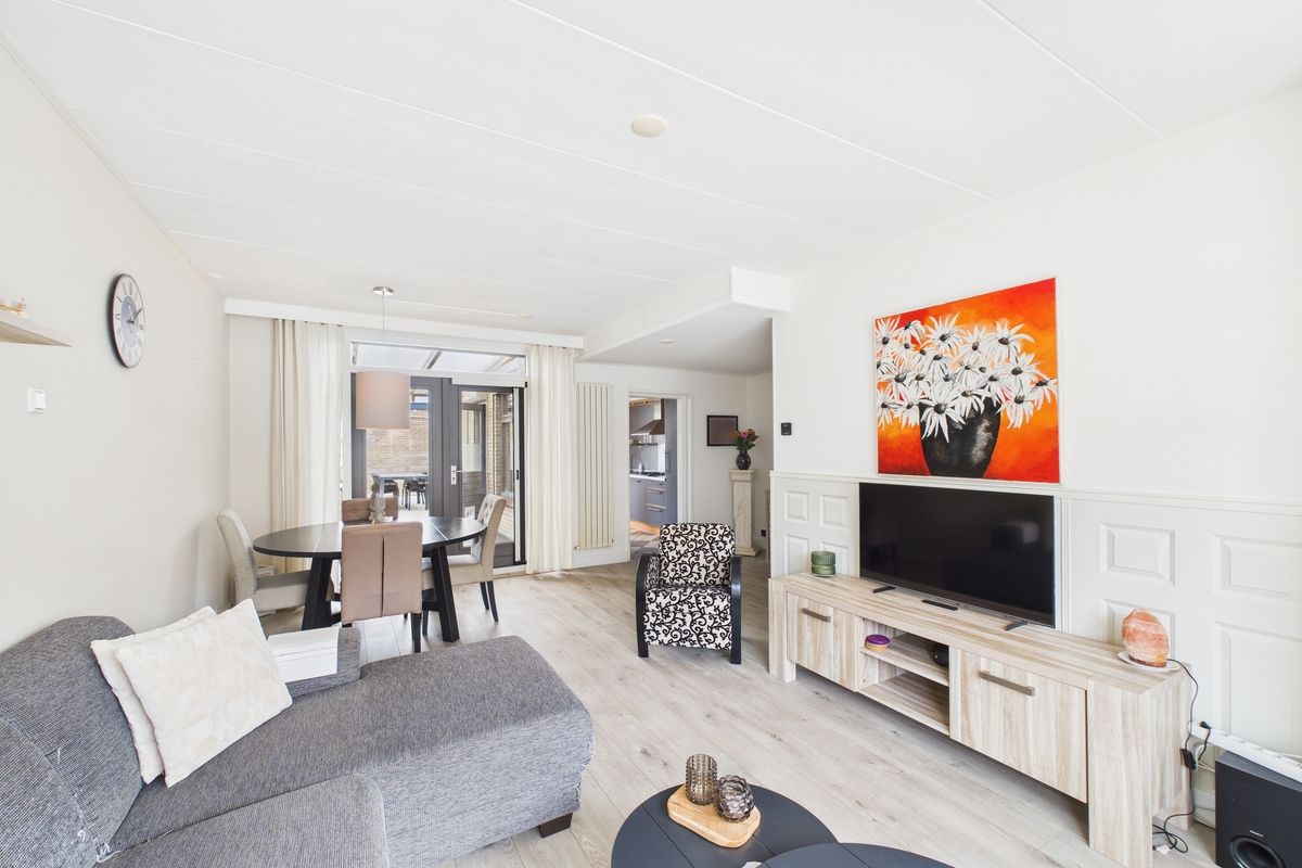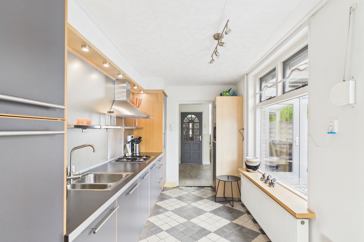 We betreden de woning via de hal met opgaande trap, garderobe, toilet en toegang tot de woonkamer. De lichte en sfeervolle woonkamer beschikt over een nette laminaatvloer en openslaande deuren naar de tuin. Aansluitend treffen we de keuken, deze is praktisch ingericht en uitgerust met inbouwapparatuur zoals een vaatwasser, koelkast, kookplaat en afzuigkap. Daarnaast is er een opstelplaats voor de wasmachine, deze is keurig weggewerkt.