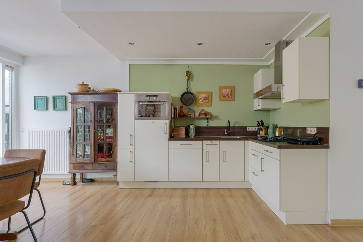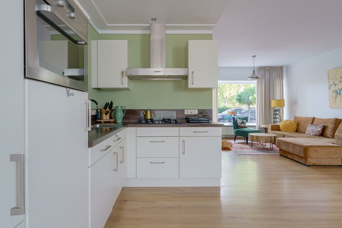 De open keuken is praktisch ingedeeld en voorzien van inbouwapparatuur: een vaatwasser, koel-/vriescombinatie, gasfornuis, combioven en een kraan met spoelbak. De keuken sluit naadloos aan op de woonkamer, waardoor koken en gezellig samenzijn makkelijk samengaan.