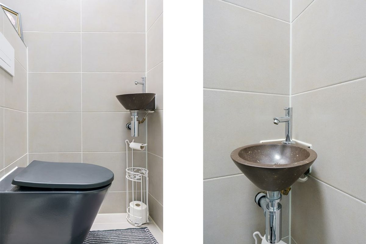 The bathroom was completely renovated in 2023 and features a modern walk-in shower, a vanity unit, and a second toilet. The space is stylishly finished and ready for years of carefree use.