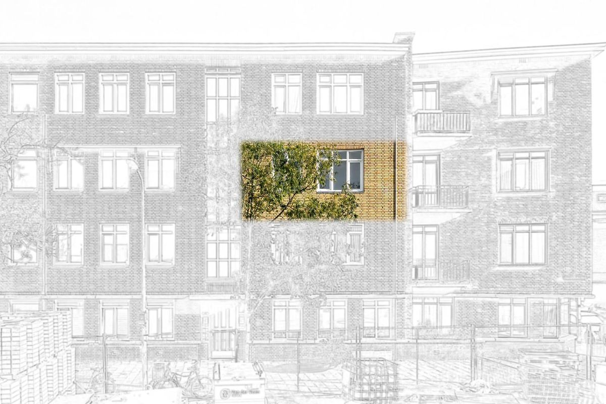 Collectieve entree op de begane grond via een gesloten portiek met trapopgang naar de tweede etage.