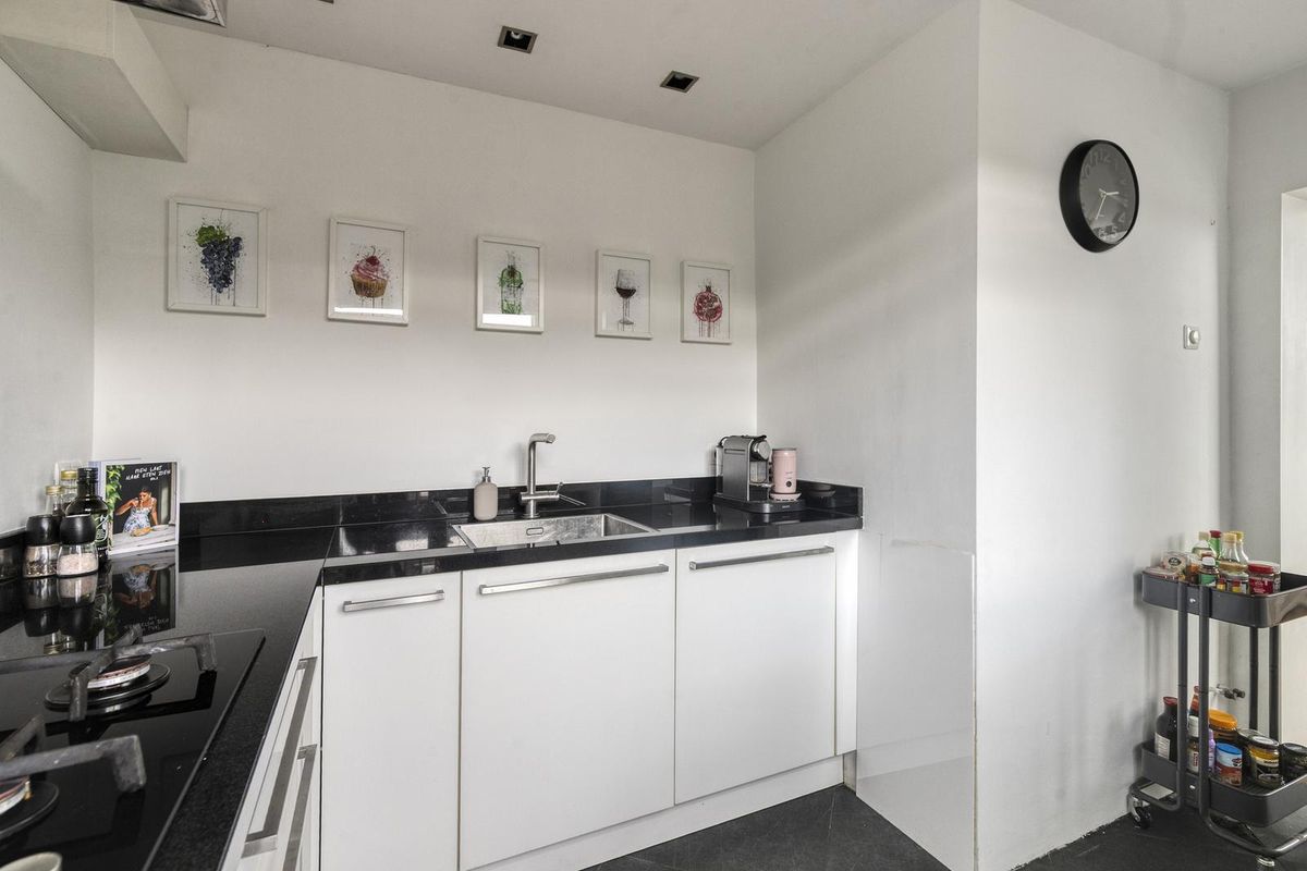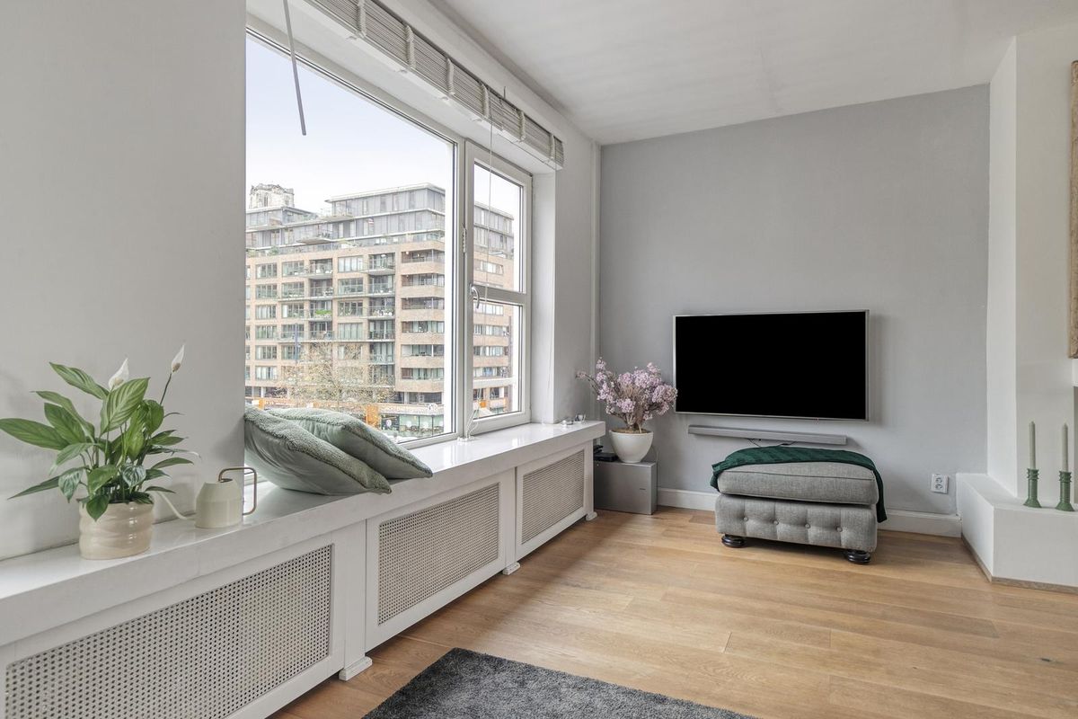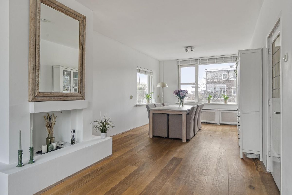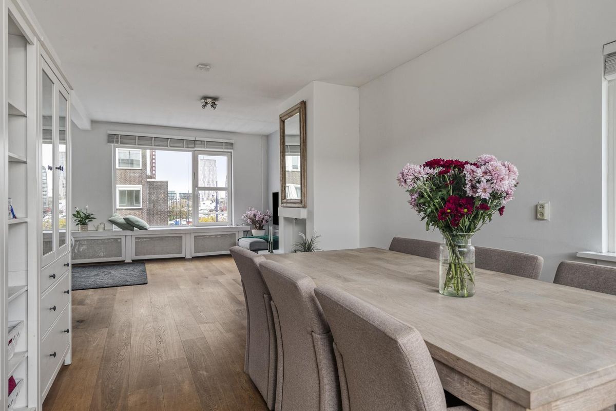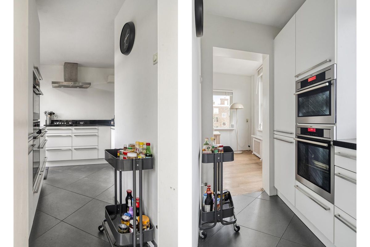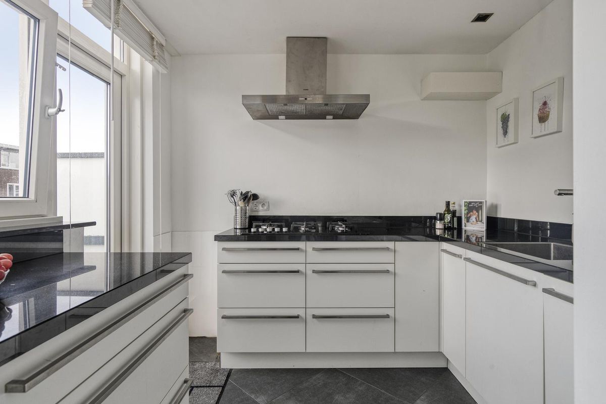 Via de hal betreed je het appartement en kom je vanuit de hal in de ruime living. Hier valt direct je oog op het stadse uitzicht. De vele ramen bieden veel lichtinval en een sfeervol uitzicht. Het fijne woongedeelte is gelegen over de breedte van de woning. Hierdoor heeft de woonkamer voldoende ruimte voor een zithoek en eethoek. Leuk detail is de schouw als extra sfeerdetail. De keuken is bereikbaar vanuit de woonkamer. De keuken is van een ruim formaat en beschikt over een goede opstelling met aangrenzend balkon. Het balkon is gelegen op het Noorden en je kan hier in de ochtend genieten van een kop koffie in de ochtendzon.