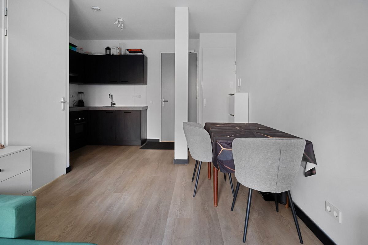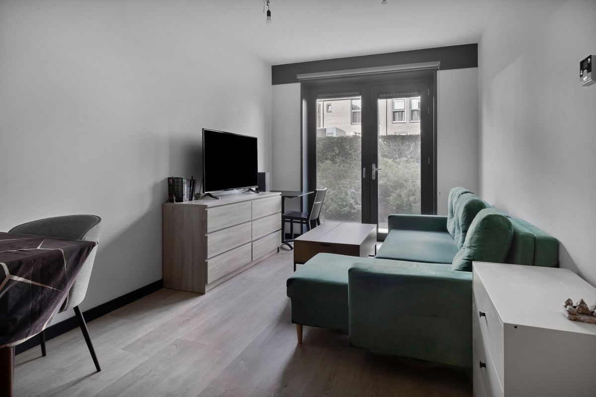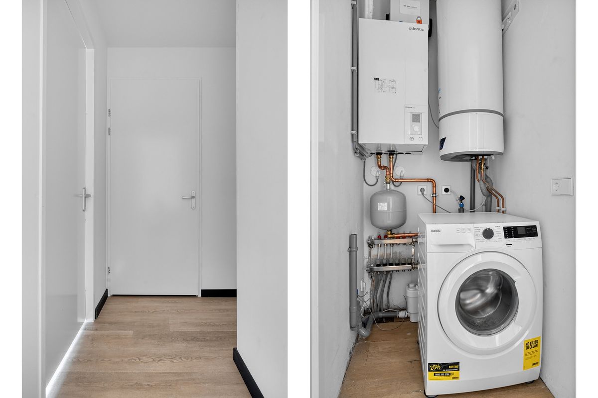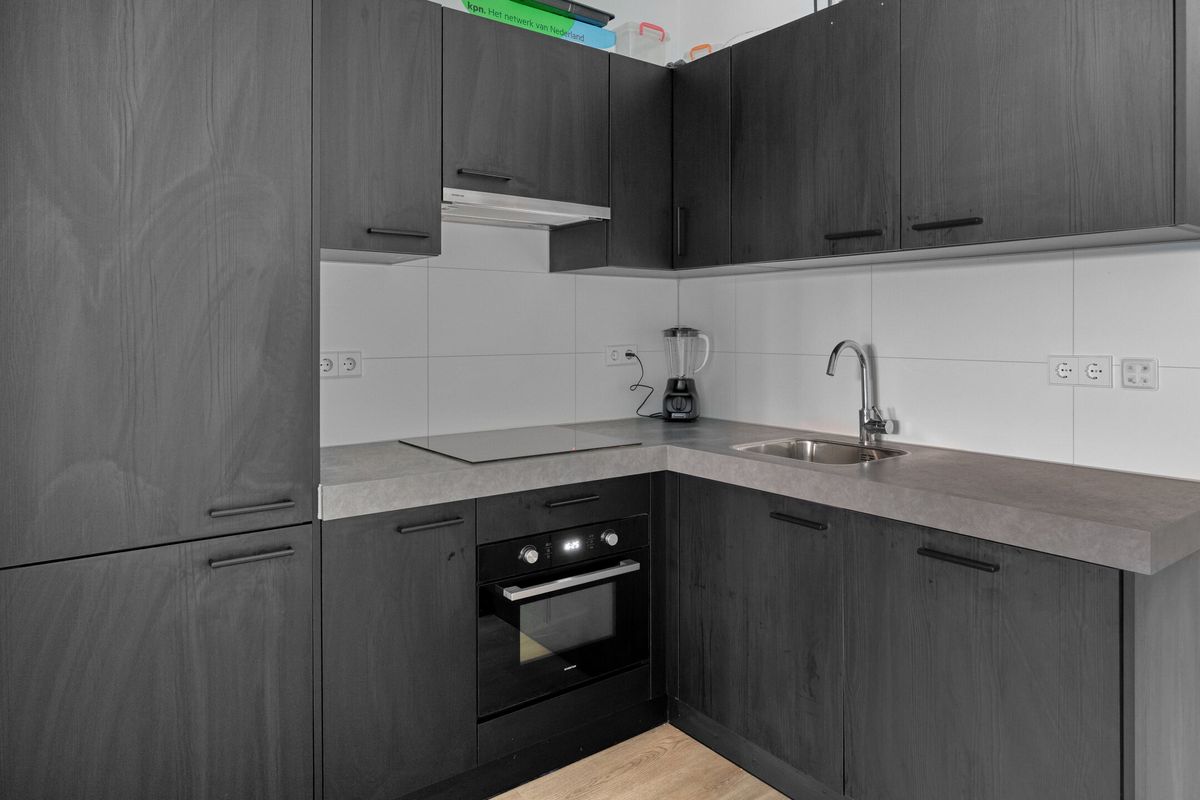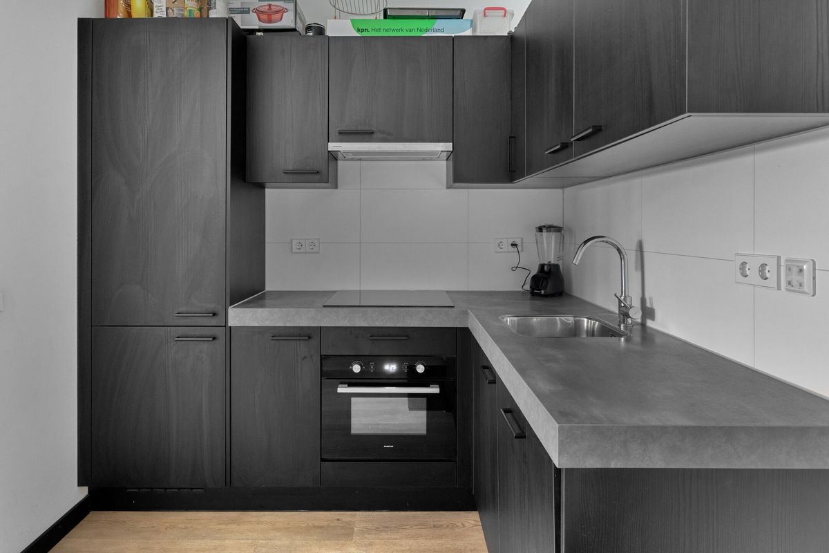 Je stapt direct het appartement binnen in de lichte woonkamer, die zich aan de achterzijde bevindt. Dankzij de grote raampartij en de deur naar buiten valt er volop daglicht naar binnen. De indeling biedt voldoende ruimte voor zowel een gezellige zithoek als een eethoek. Aangrenzend vind je de in 2023 geplaatste keuken, voorzien van hoogwaardige inbouwapparatuur zoals een inductiekookplaat, afzuigkap, koel-vriescombinatie en combimagnetron. Met haar strakke design en functionele opzet vormt de keuken een comfortabele plek om te koken, terwijl de open verbinding met de woonkamer zorgt dat je tijdens het koken gezellig contact houdt met je gezelschap.