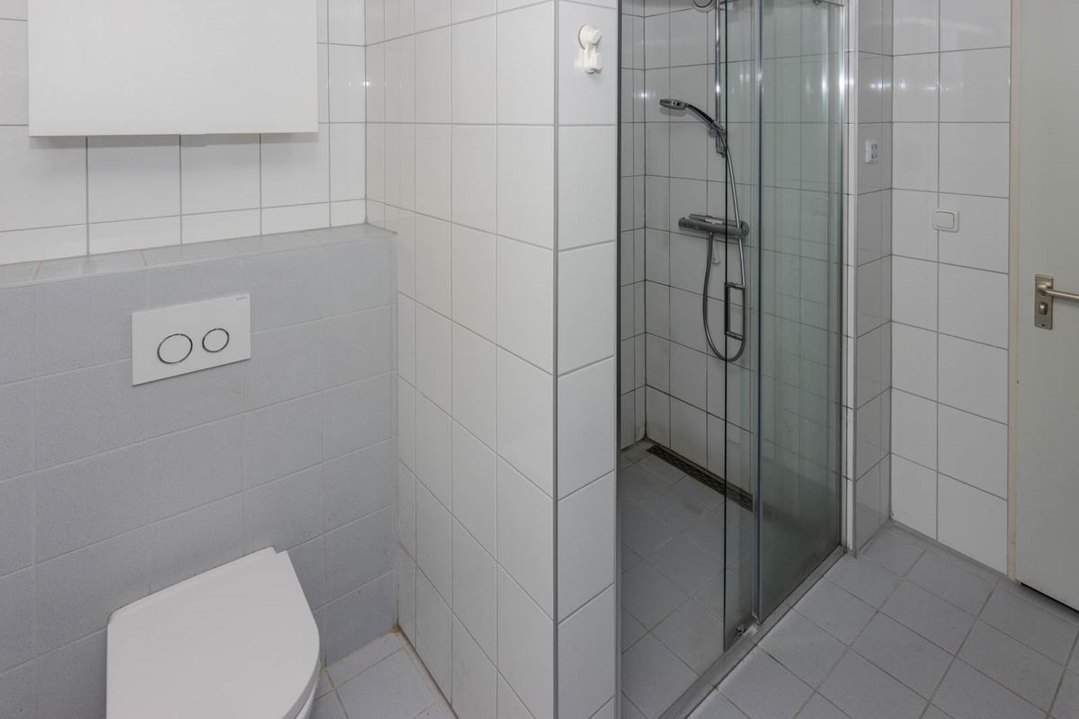 Via de schuifpui in de woonkamer bereik je de zonnige achtertuin. Hier kun je in alle rust genieten van het buitenleven. In de tuin heb je toegang tot een praktische houten berging.